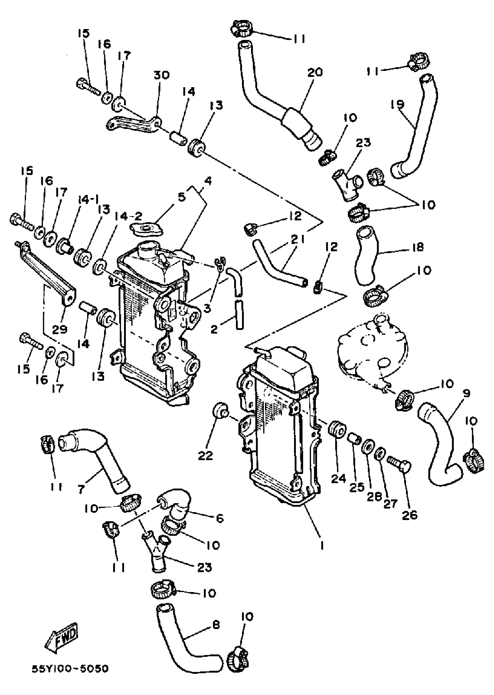 Yamaha YZ125N (YZ125N) 1985 RADIATOR - HOSE Diagram