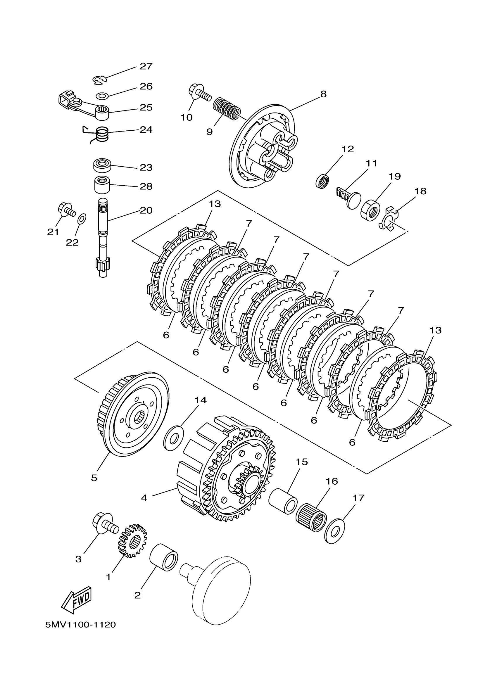 Yamaha YZ125N1 (YZ125) 5MV1 2001 CLUTCH Diagram