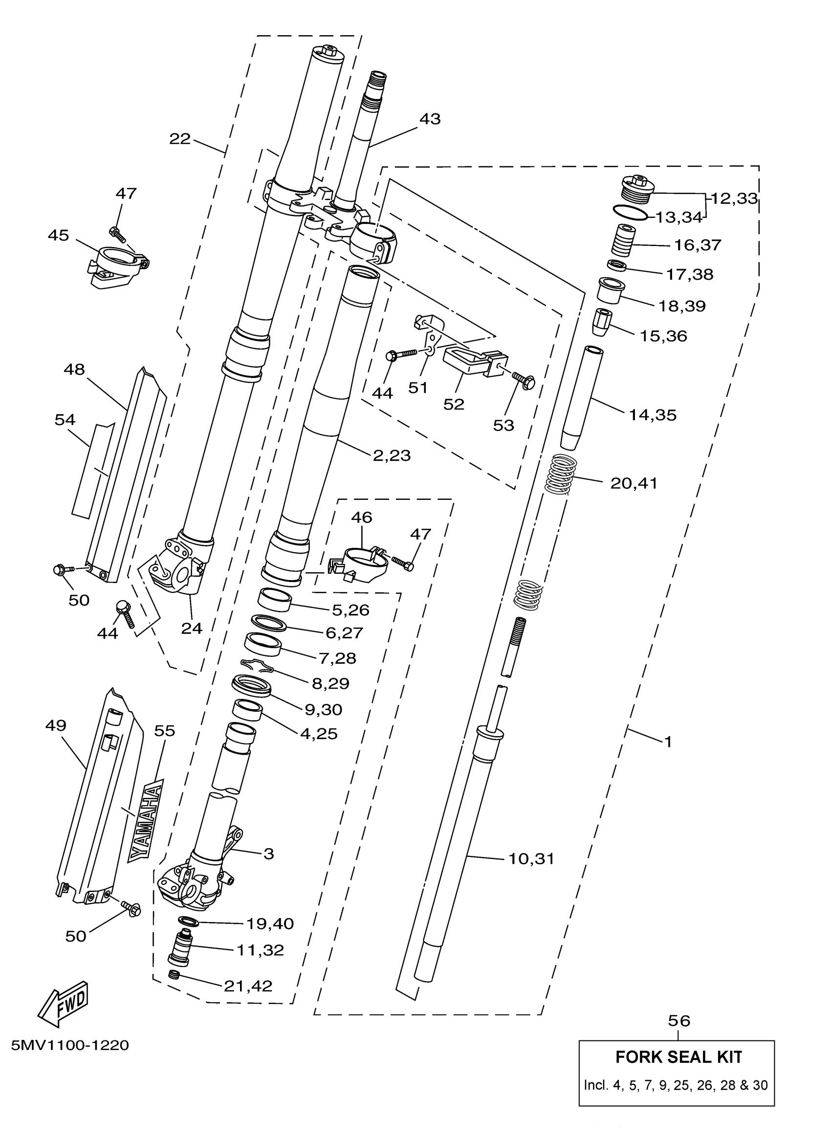 Yamaha YZ125N1 (YZ125) 5MV1 2001 FRONT FORK Diagram