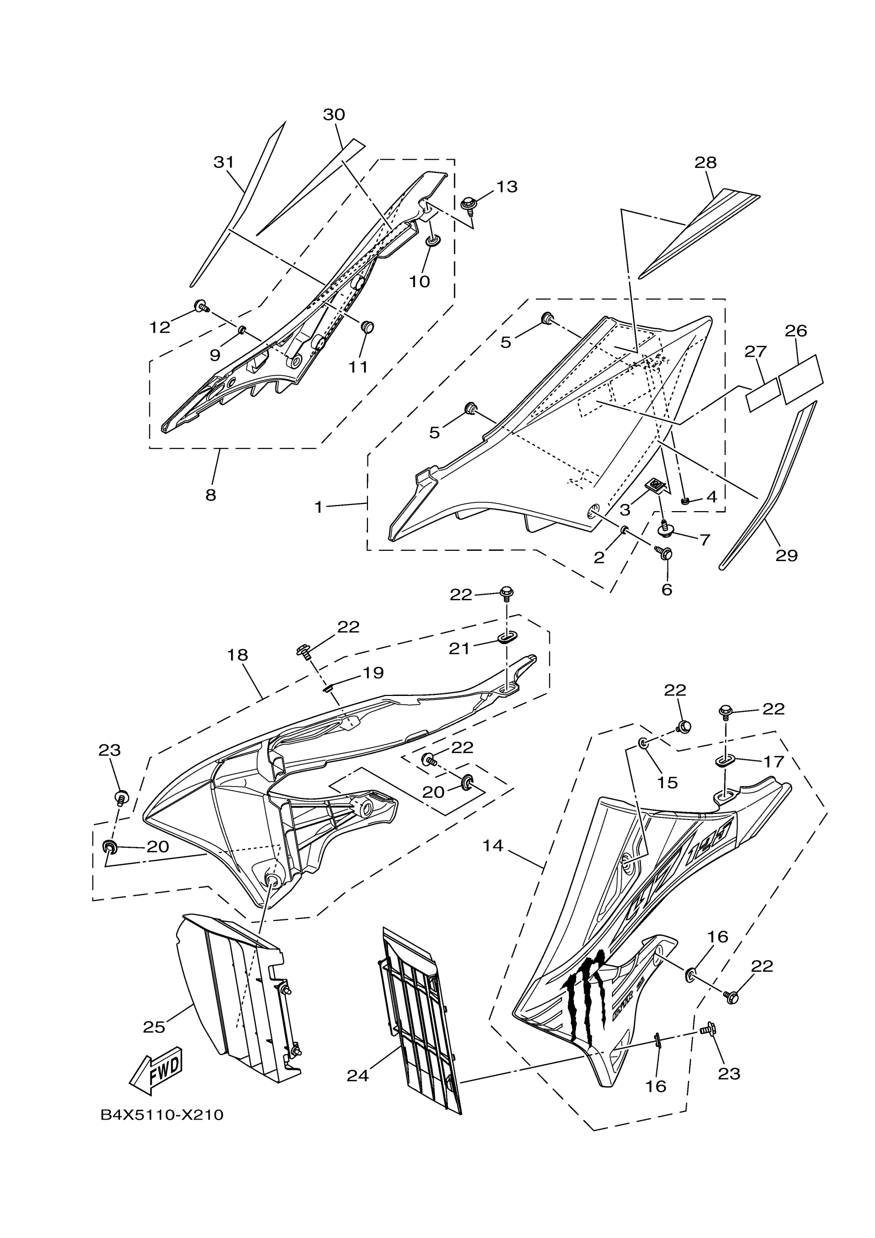 Yamaha YZ125N2ME (YZ125 MONSTER) B4X5 2022 SIDE COVER Diagram