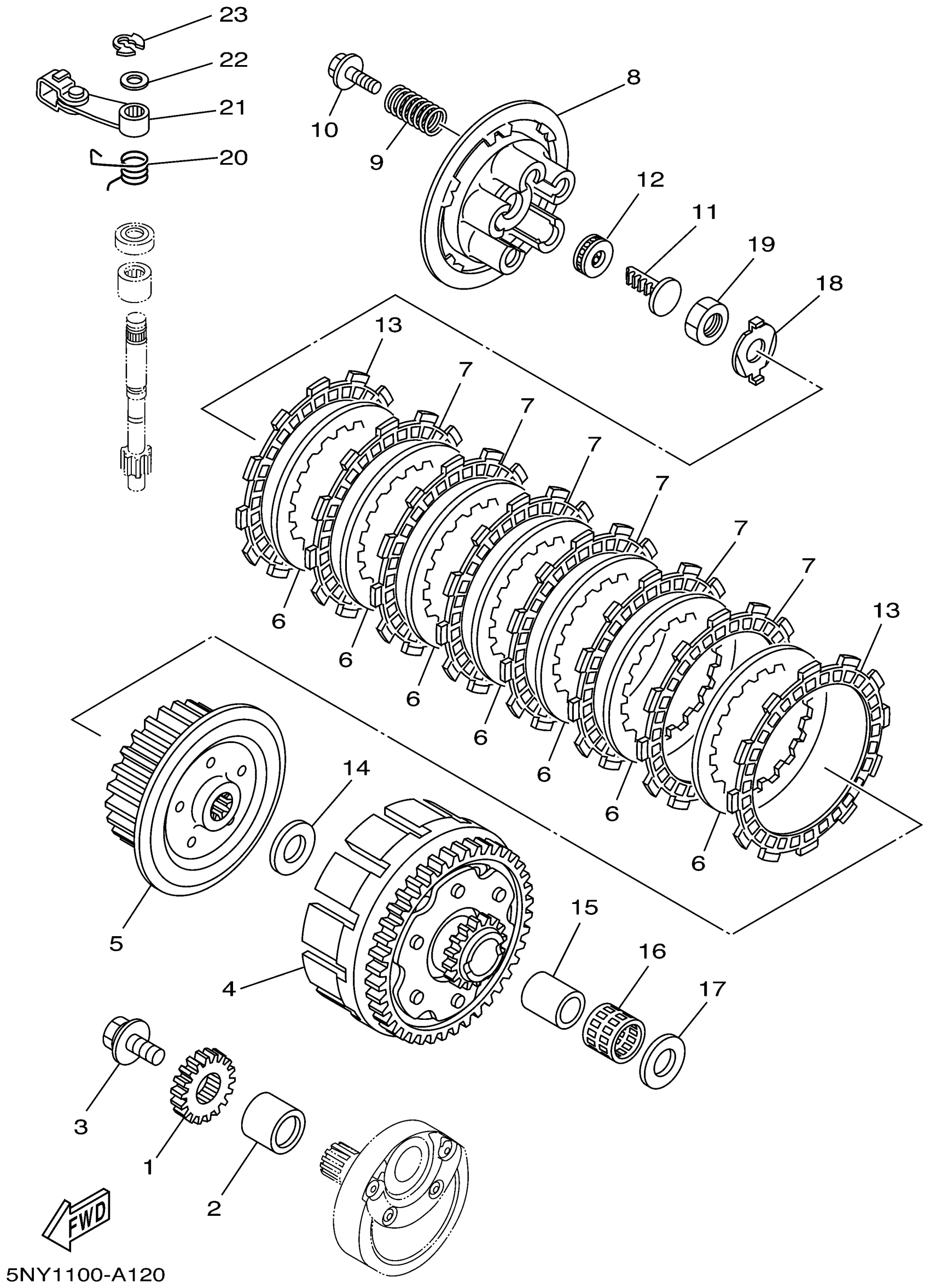 Yamaha YZ125P (YZ125) 5NY1 2002 CLUTCH Diagram