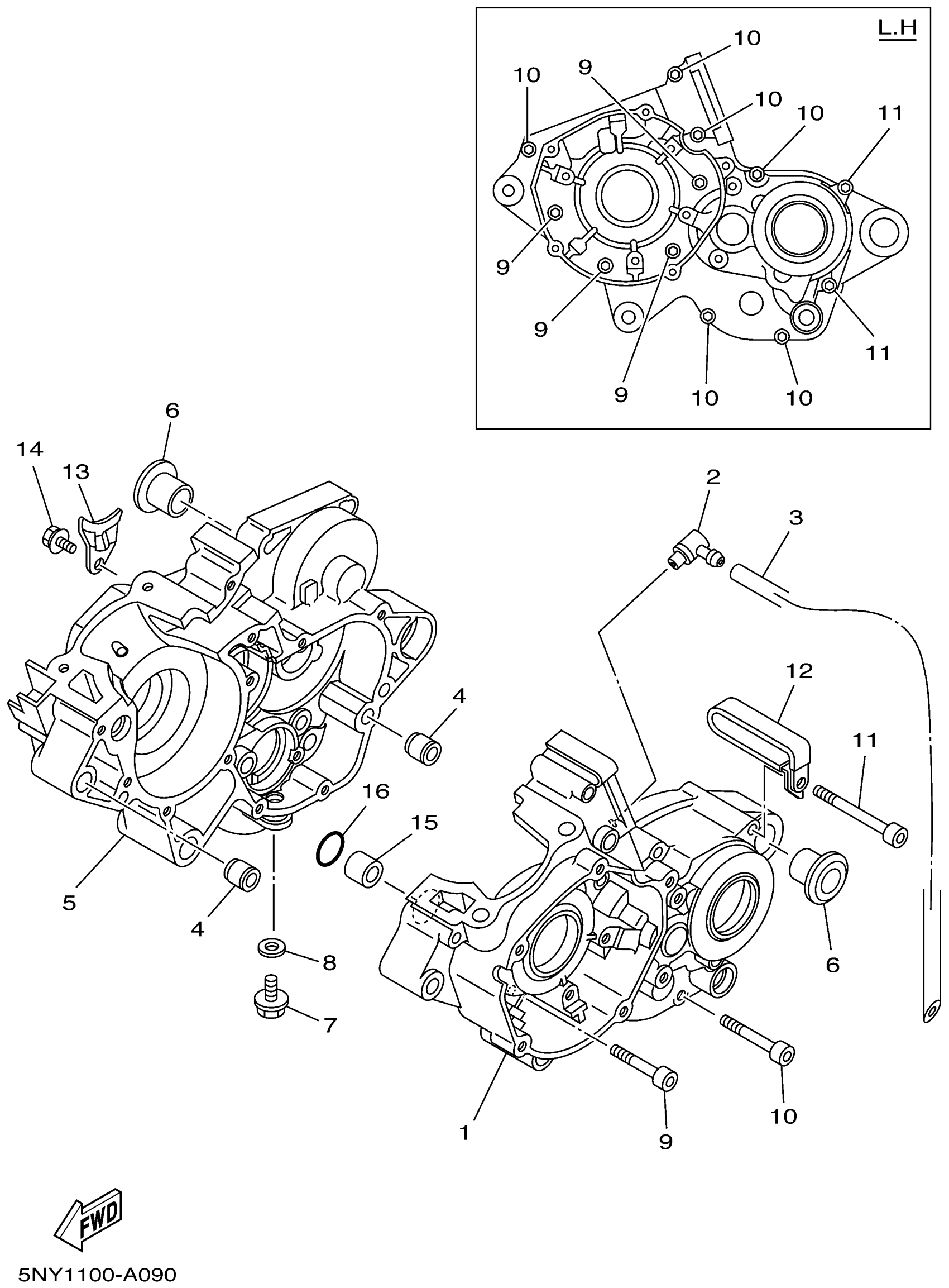 Yamaha YZ125P (YZ125) 5NY1 2002 CRANKCASE Diagram