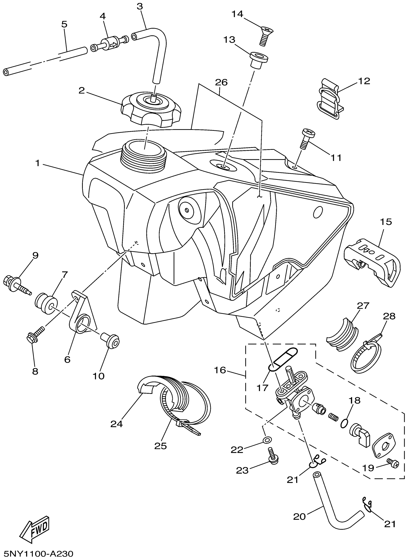Yamaha YZ125P (YZ125) 5NY1 2002 FUEL TANK Diagram