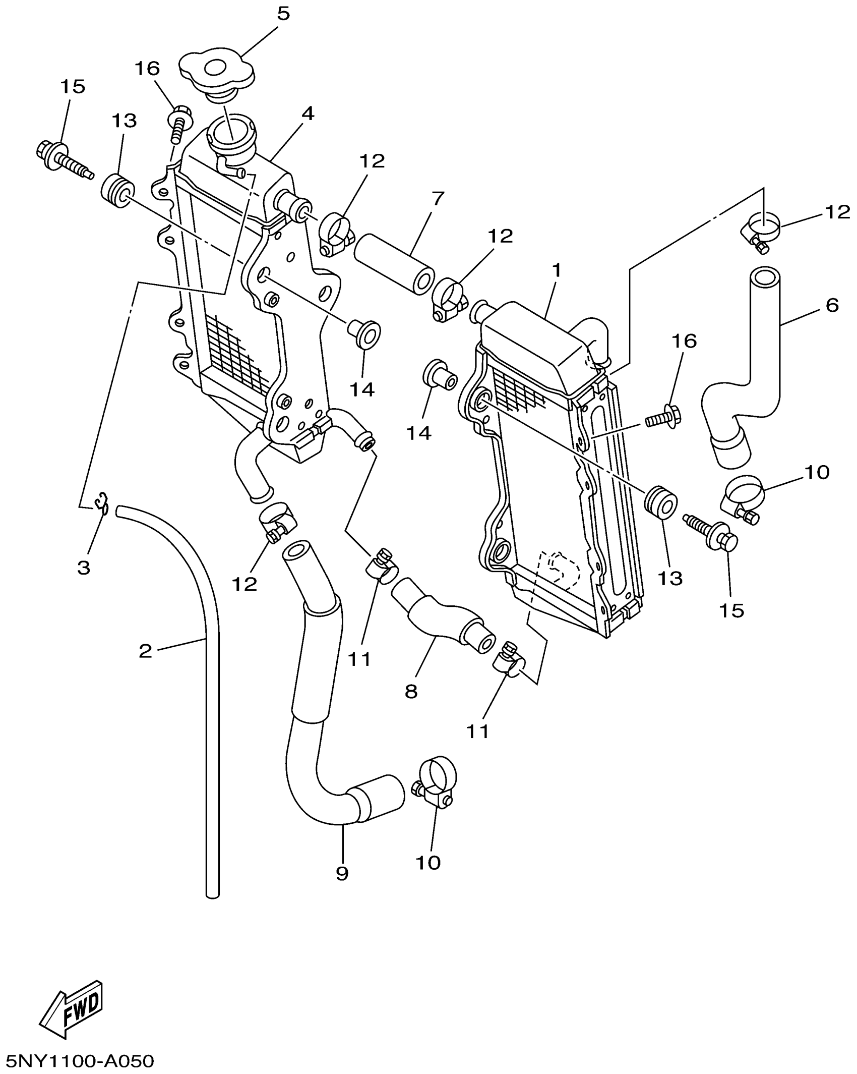 Yamaha YZ125P (YZ125) 5NY1 2002 RADIATOR HOSE Diagram