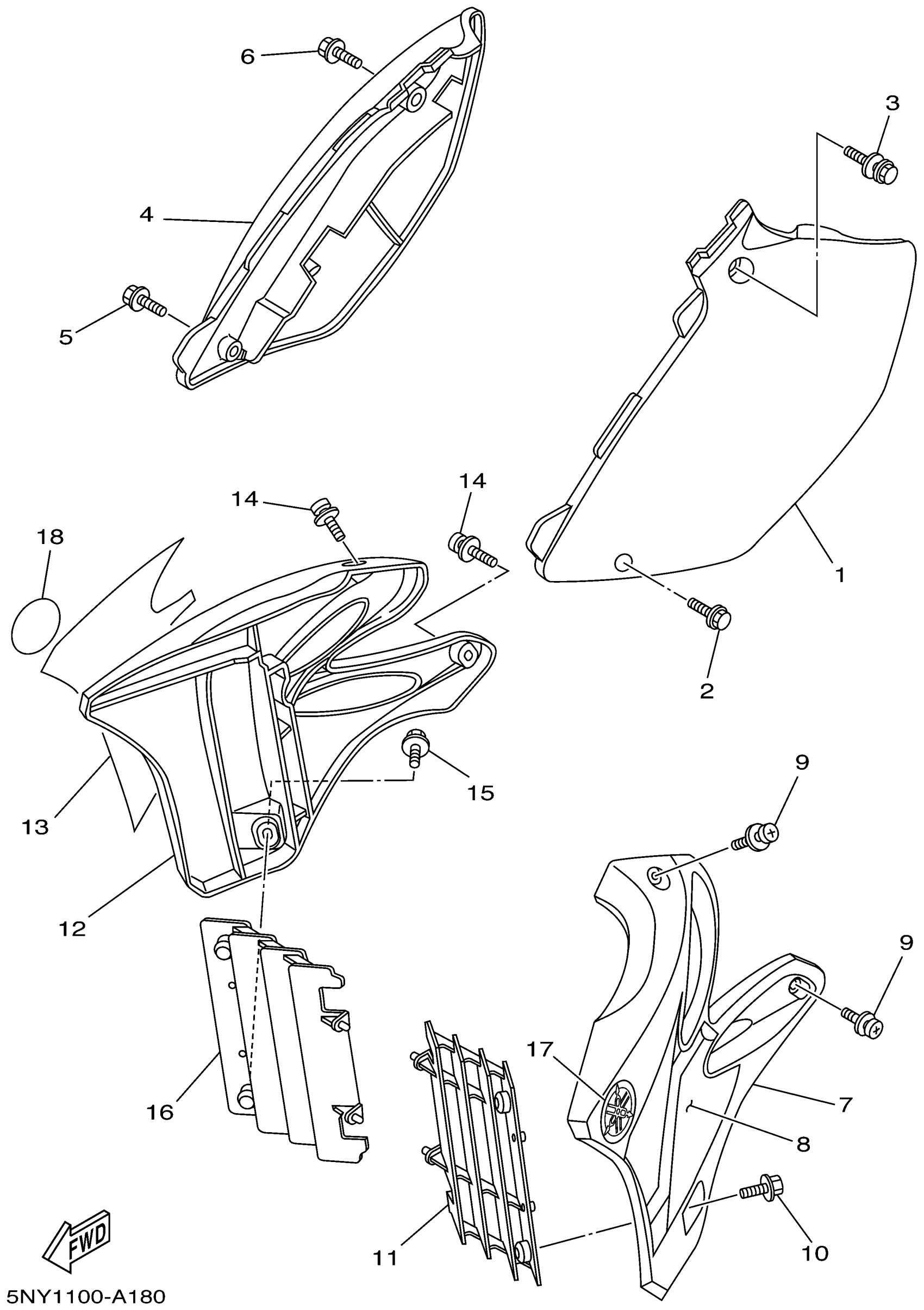 Yamaha YZ125P (YZ125) 5NY1 2002 SIDE COVER Diagram