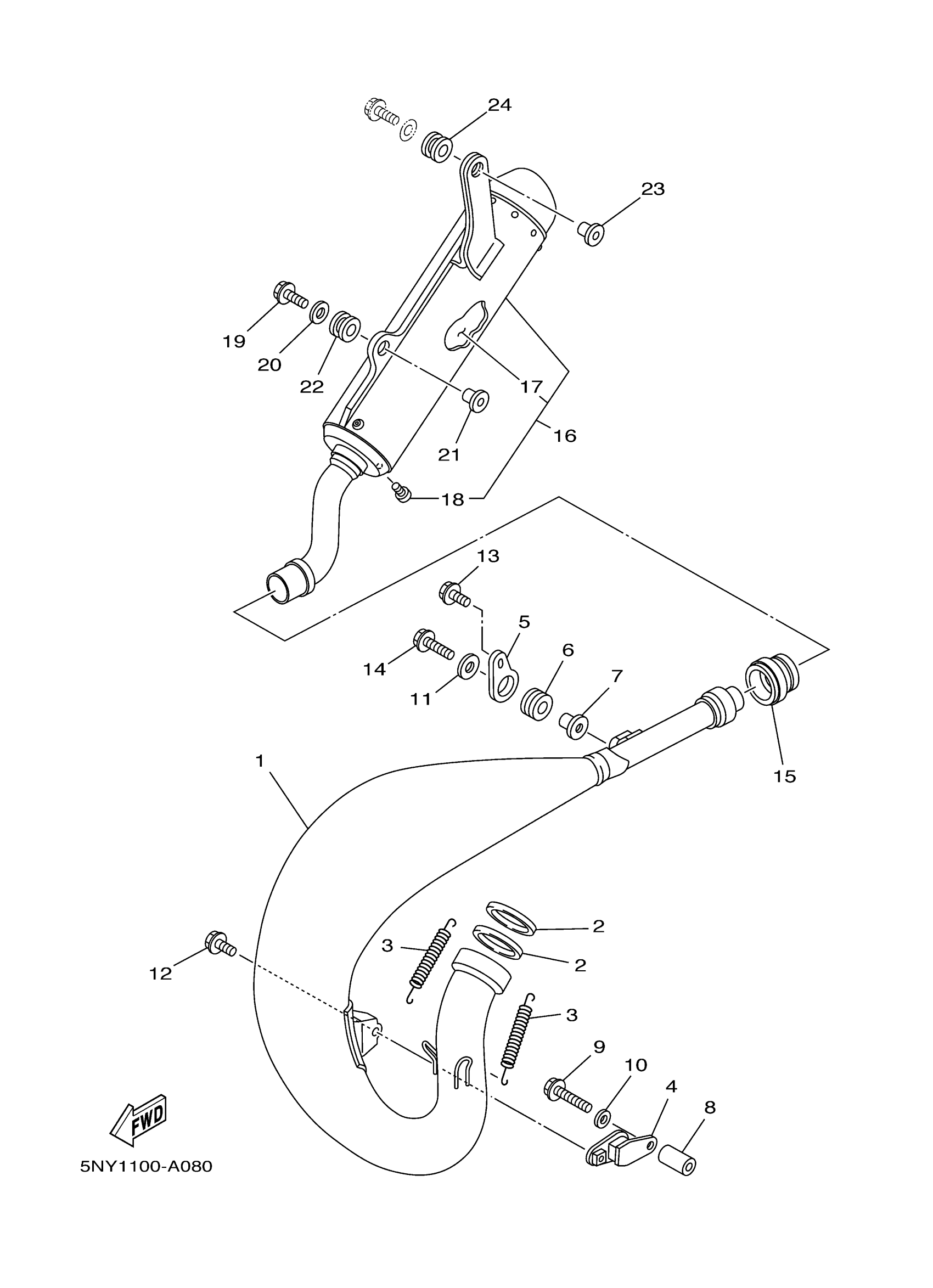 Yamaha YZ125S1 (YZ125) 5XE1 2004 EXHAUST Diagram