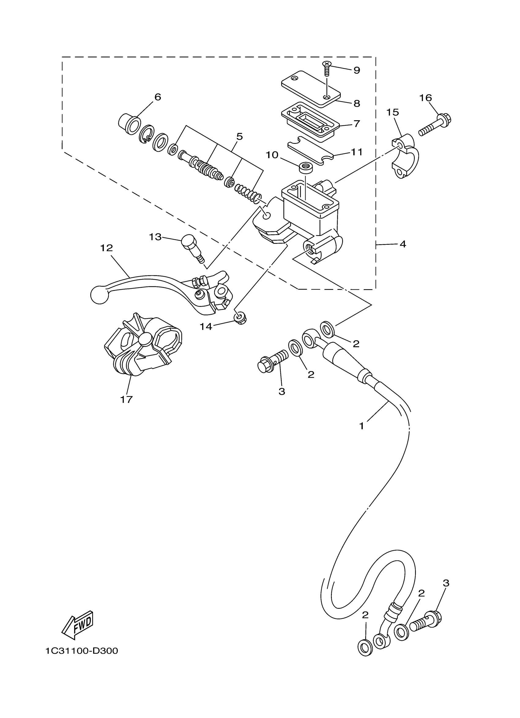 Yamaha YZ125T1 (YZ125) 1C31 2005 FRONT MASTER CYLINDER Diagram