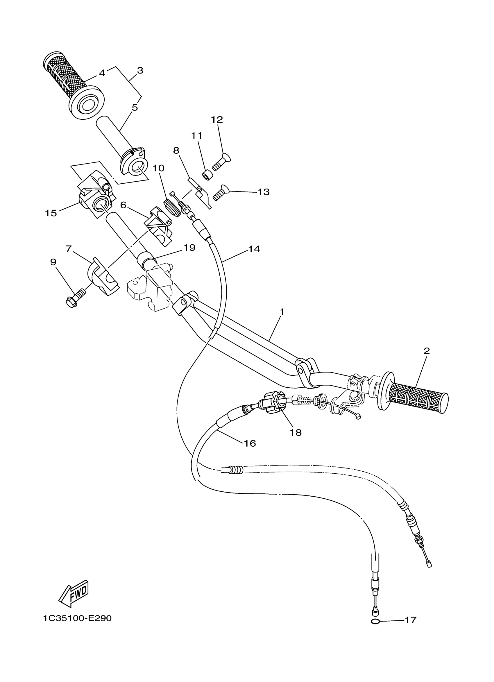 Yamaha YZ125V (YZ125) 1C35 2006 STEERING HANDLE CABLE Diagram