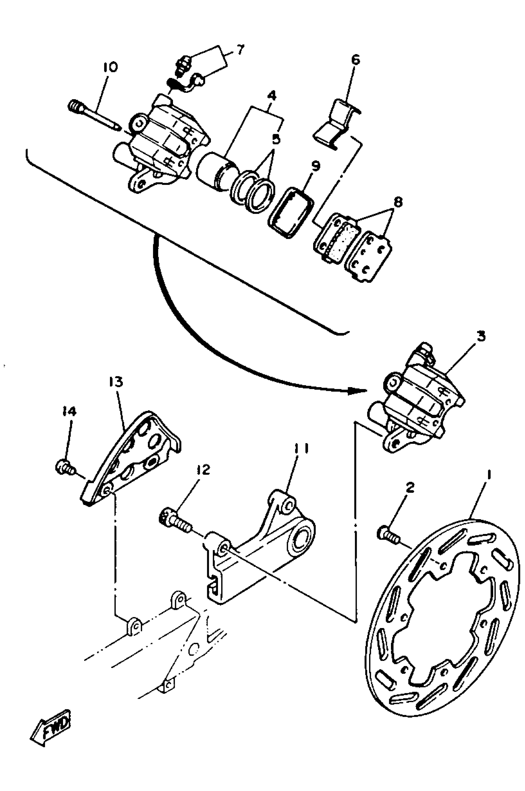 Yamaha YZ125W (YZ125W) 1989 REAR BRAKE CALIPER Diagram