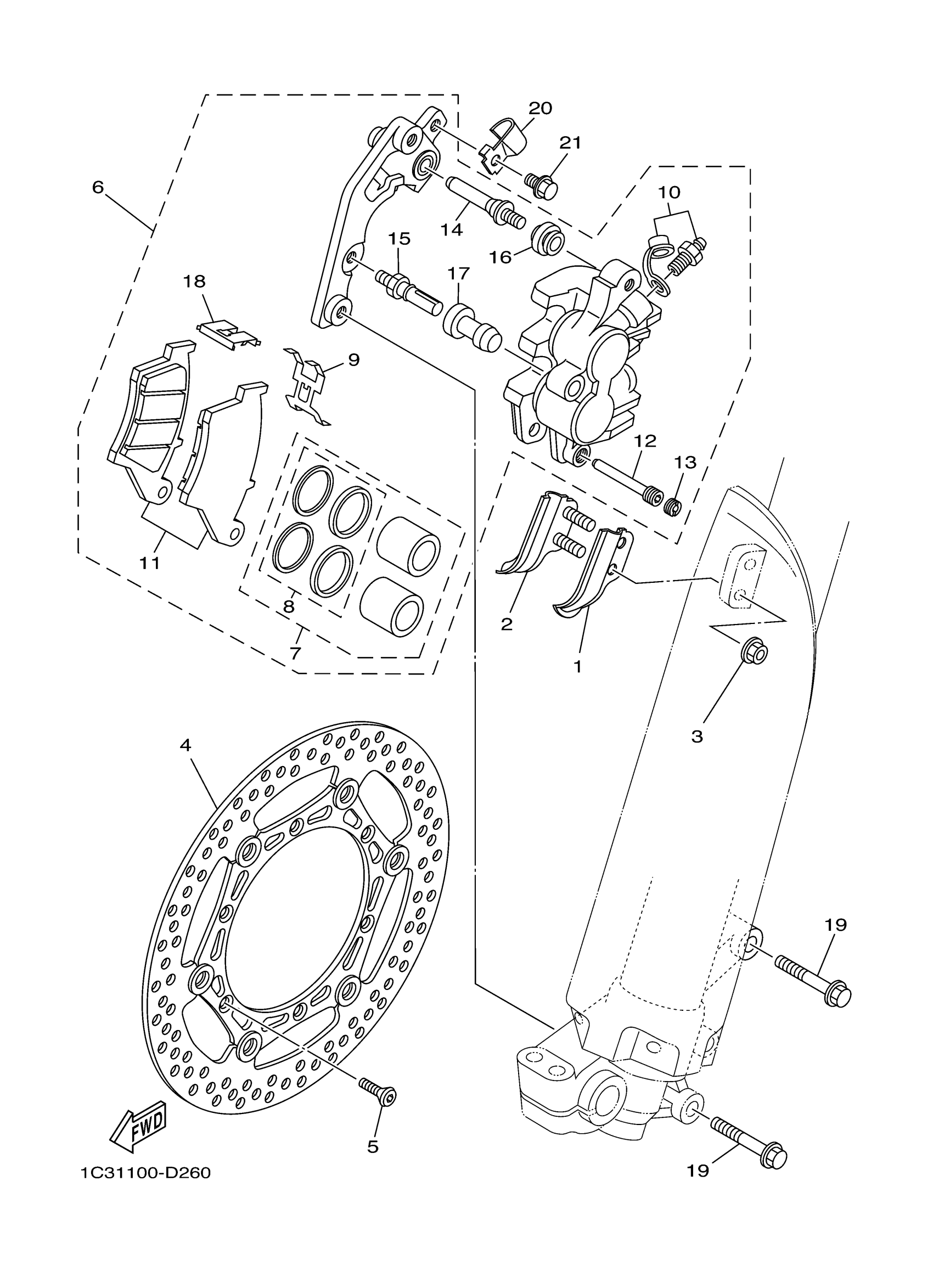 Yamaha YZ125W1 (YZ125) 1C39 2007 FRONT BRAKE CALIPER Diagram