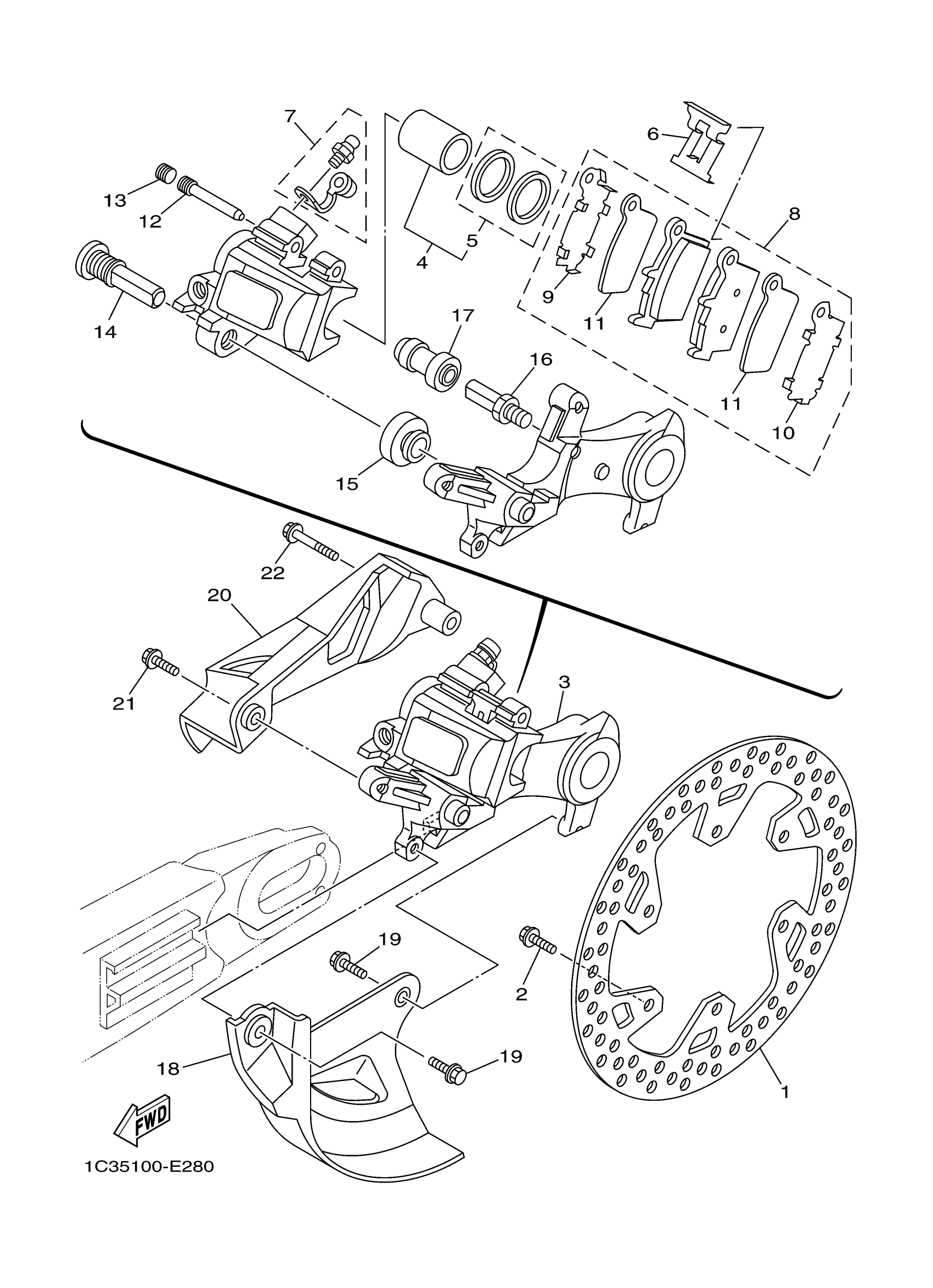 Yamaha YZ125W1 (YZ125) 1C39 2007 REAR BRAKE CALIPER Diagram