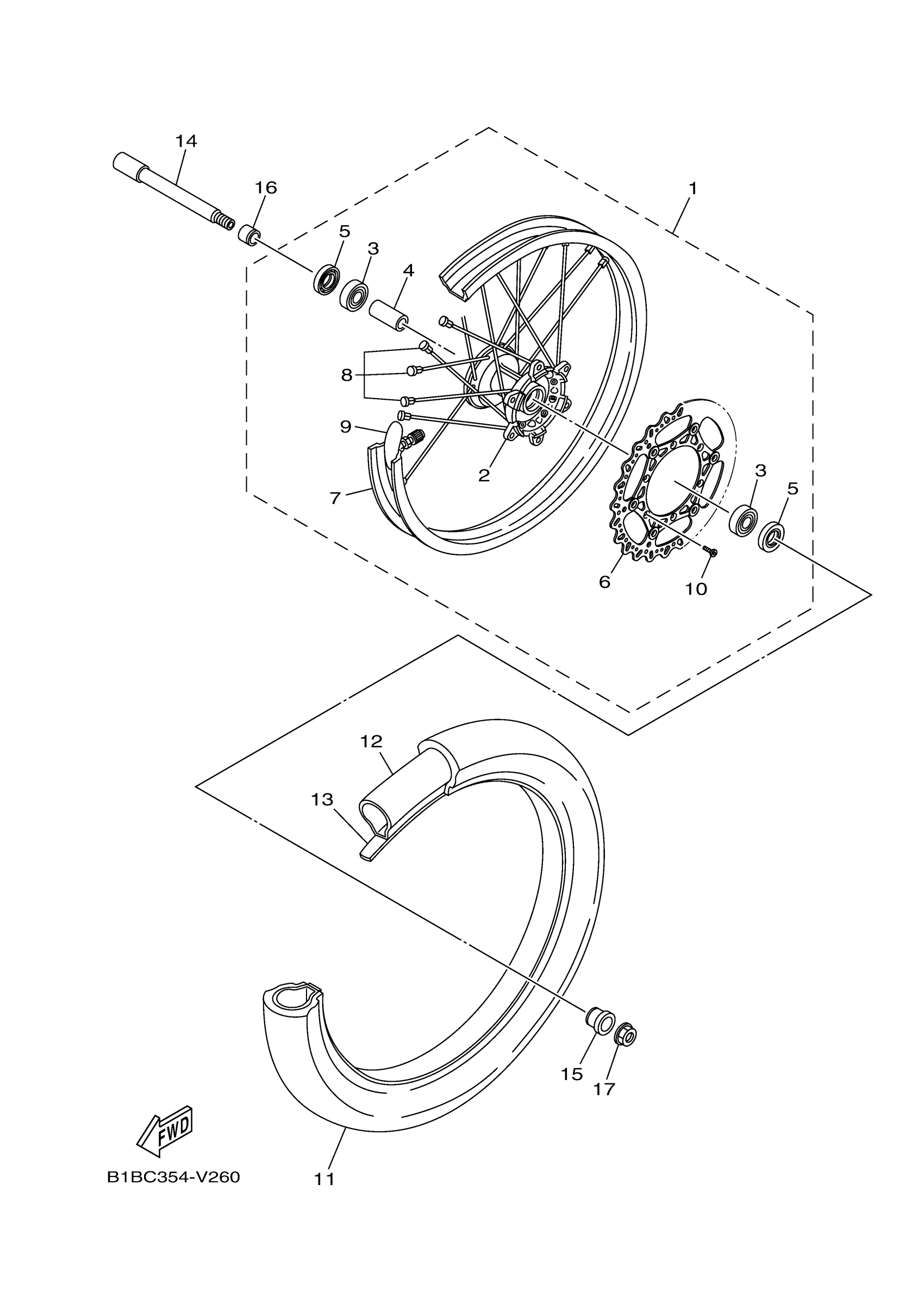 Yamaha YZ125XM (YZ125X) B1B8 2021 FRONT WHEEL Diagram