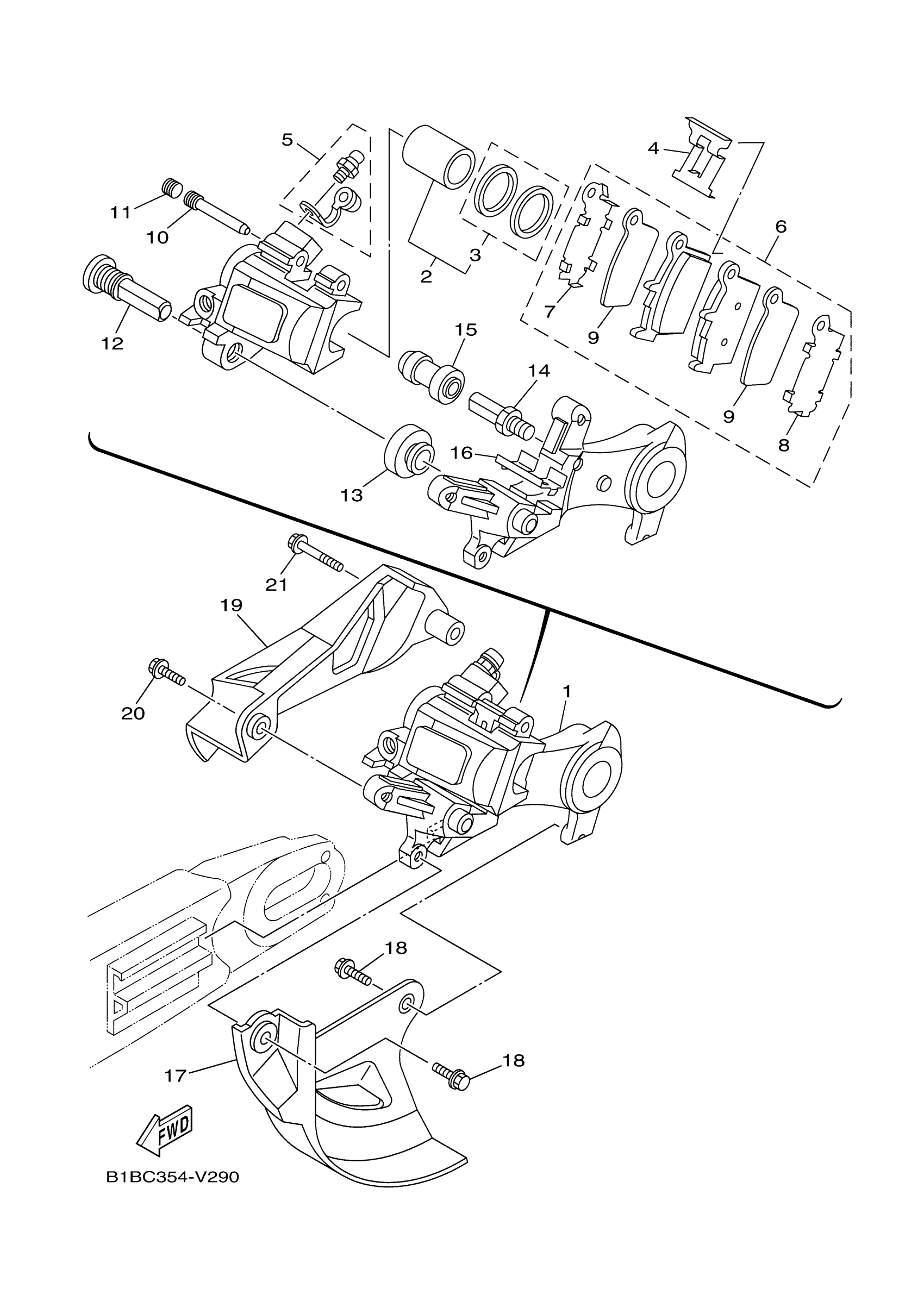 Yamaha YZ125XM (YZ125X) B1B8 2021 REAR BRAKE CALIPER Diagram