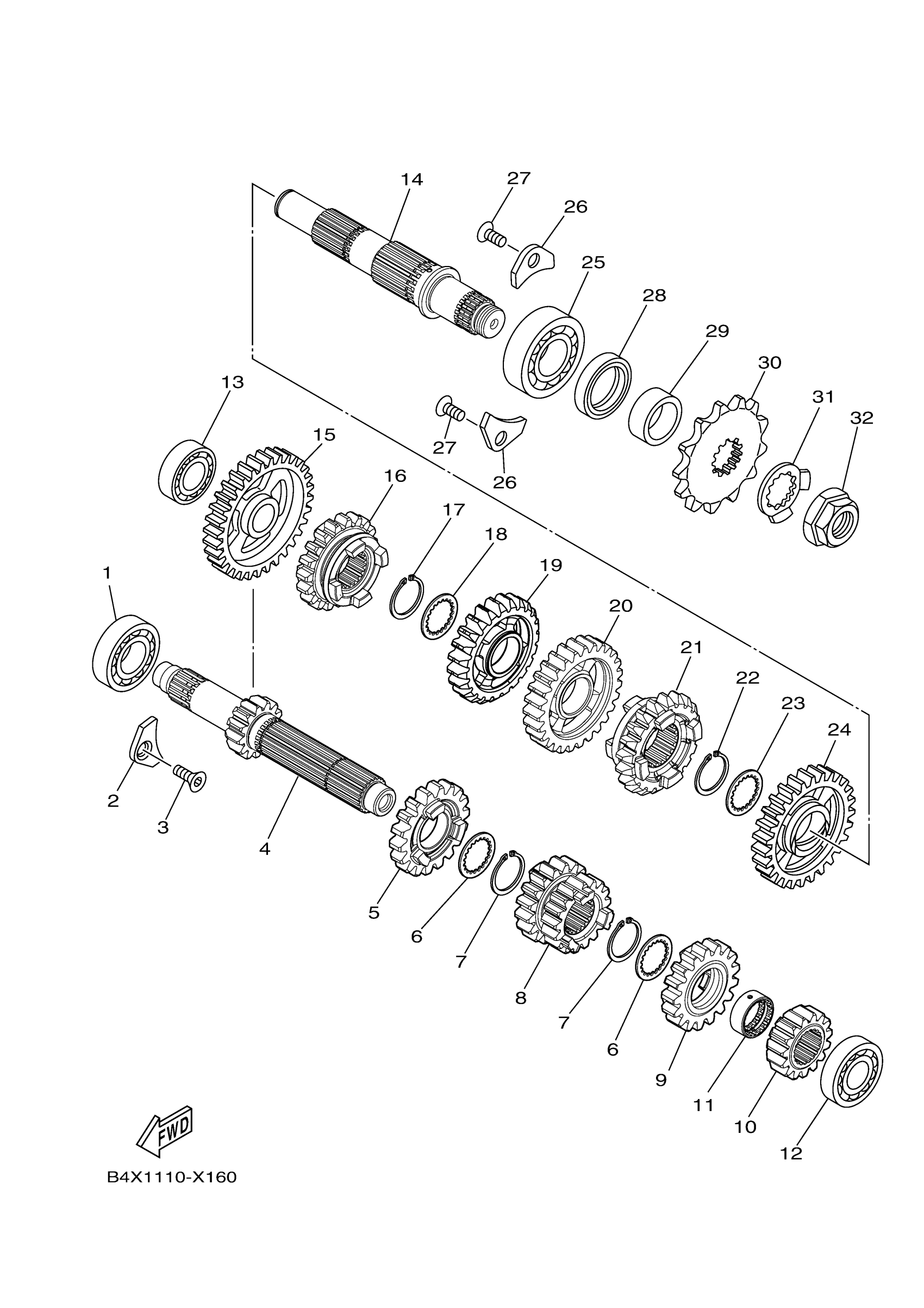 Yamaha YZ125XR (YZ125X) BRX6 2024 TRANSMISSION Diagram