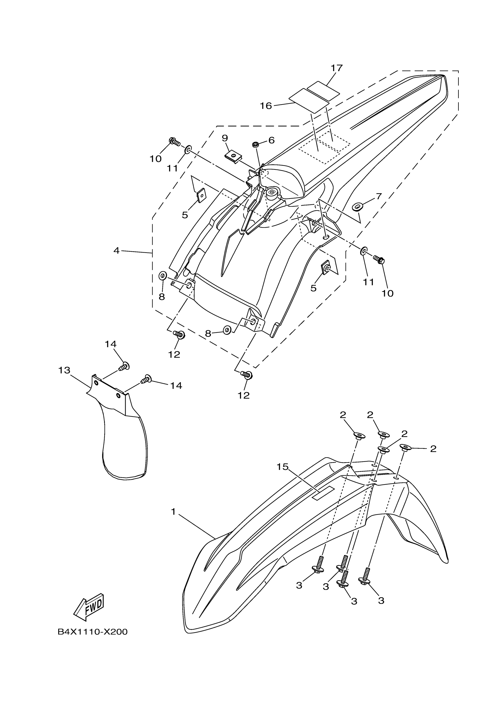Yamaha YZ125XS (YZ125X) DF32 2025 FENDER Diagram