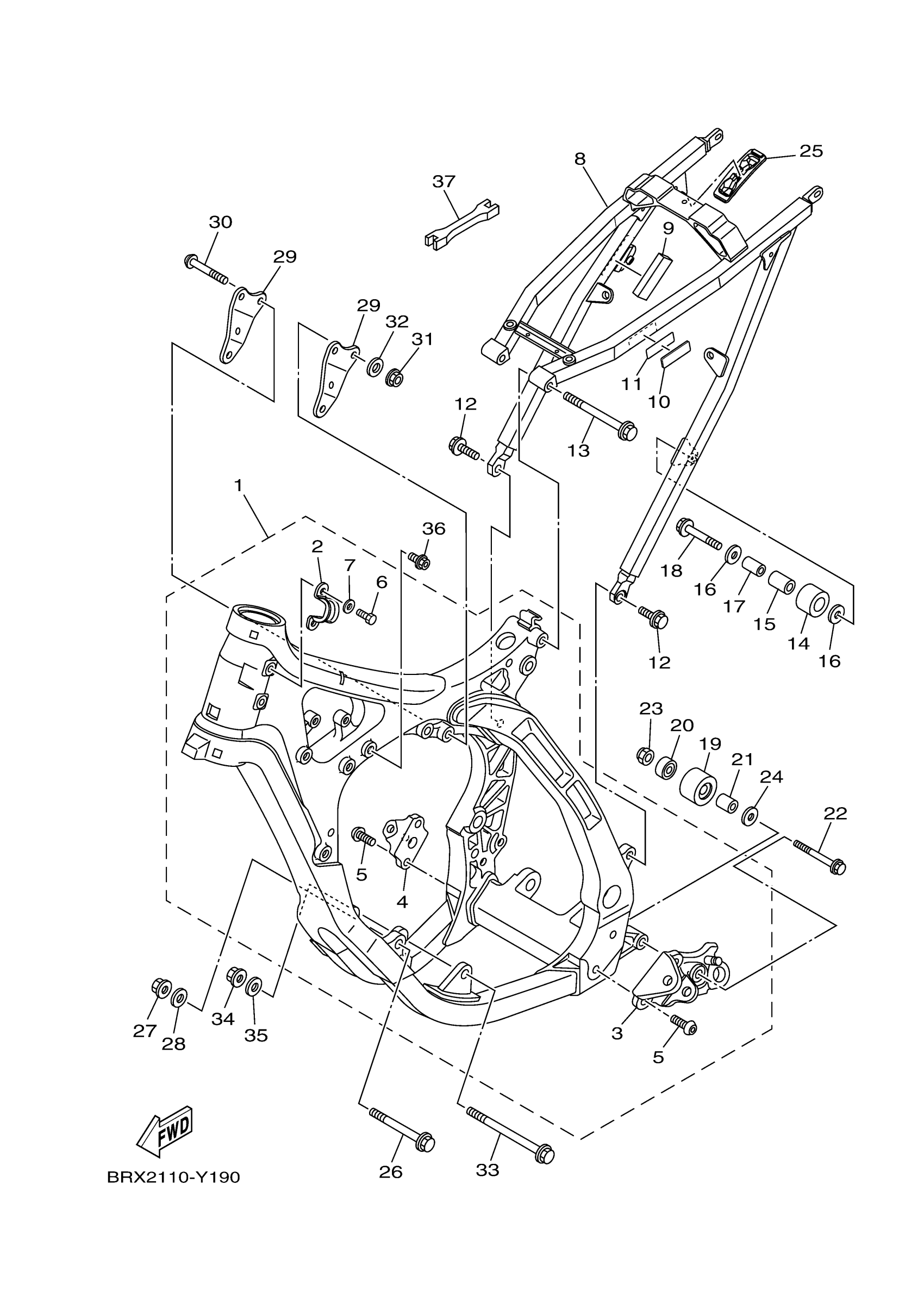 Yamaha YZ125XS (YZ125X) DF32 2025 FRAME Diagram
