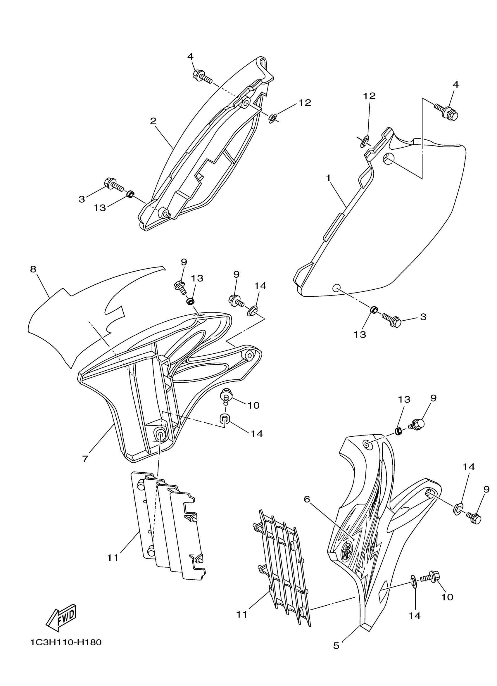 Yamaha YZ125Y (YZ125) 1C3H 2009 SIDE COVER Diagram