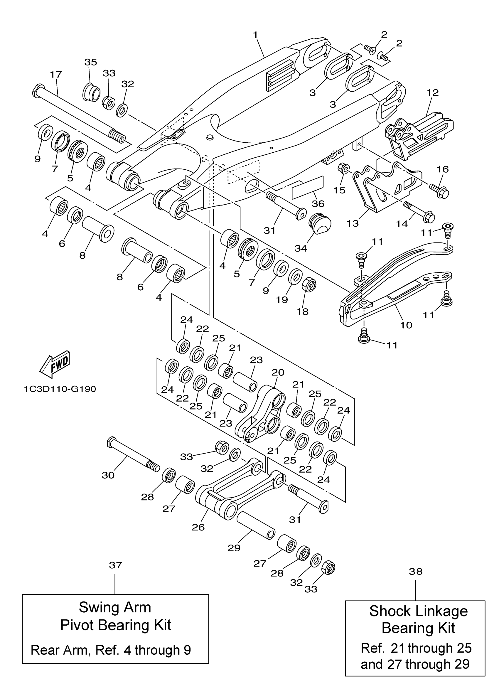Yamaha YZ125Z (YZ125) 1C3M 2010 REAR ARM Diagram