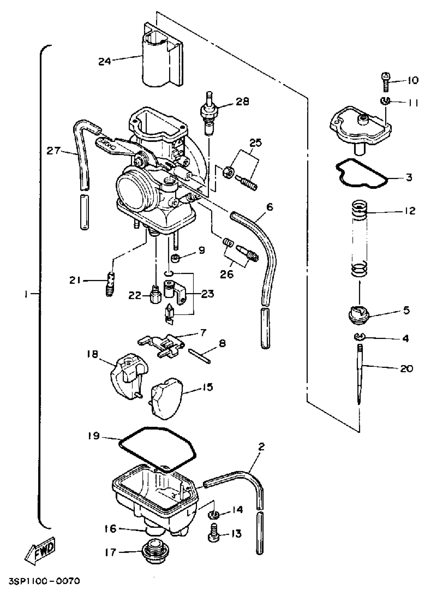 Yamaha YZ250A (YZ250A) 1974 CARBURETOR Diagram