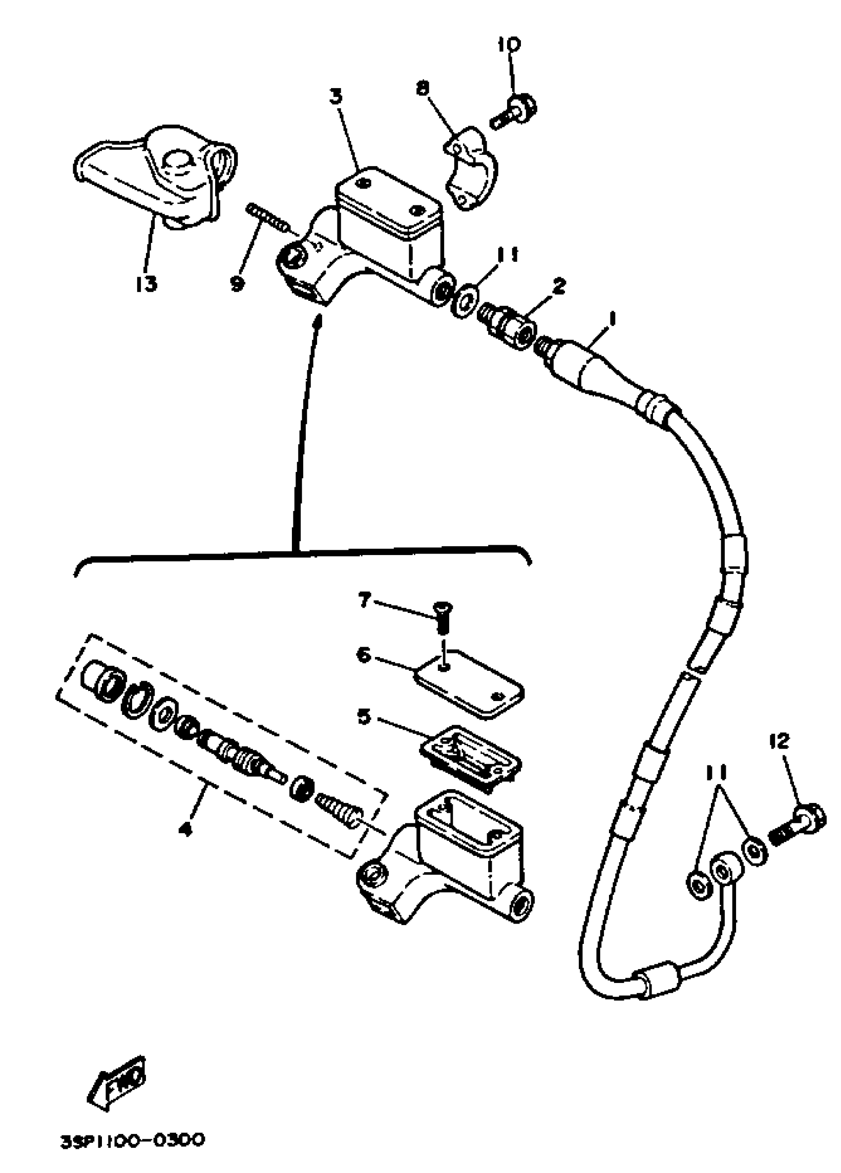 Yamaha YZ250B1 (YZ250) 1991 FRONT MASTER CYLINDER Diagram