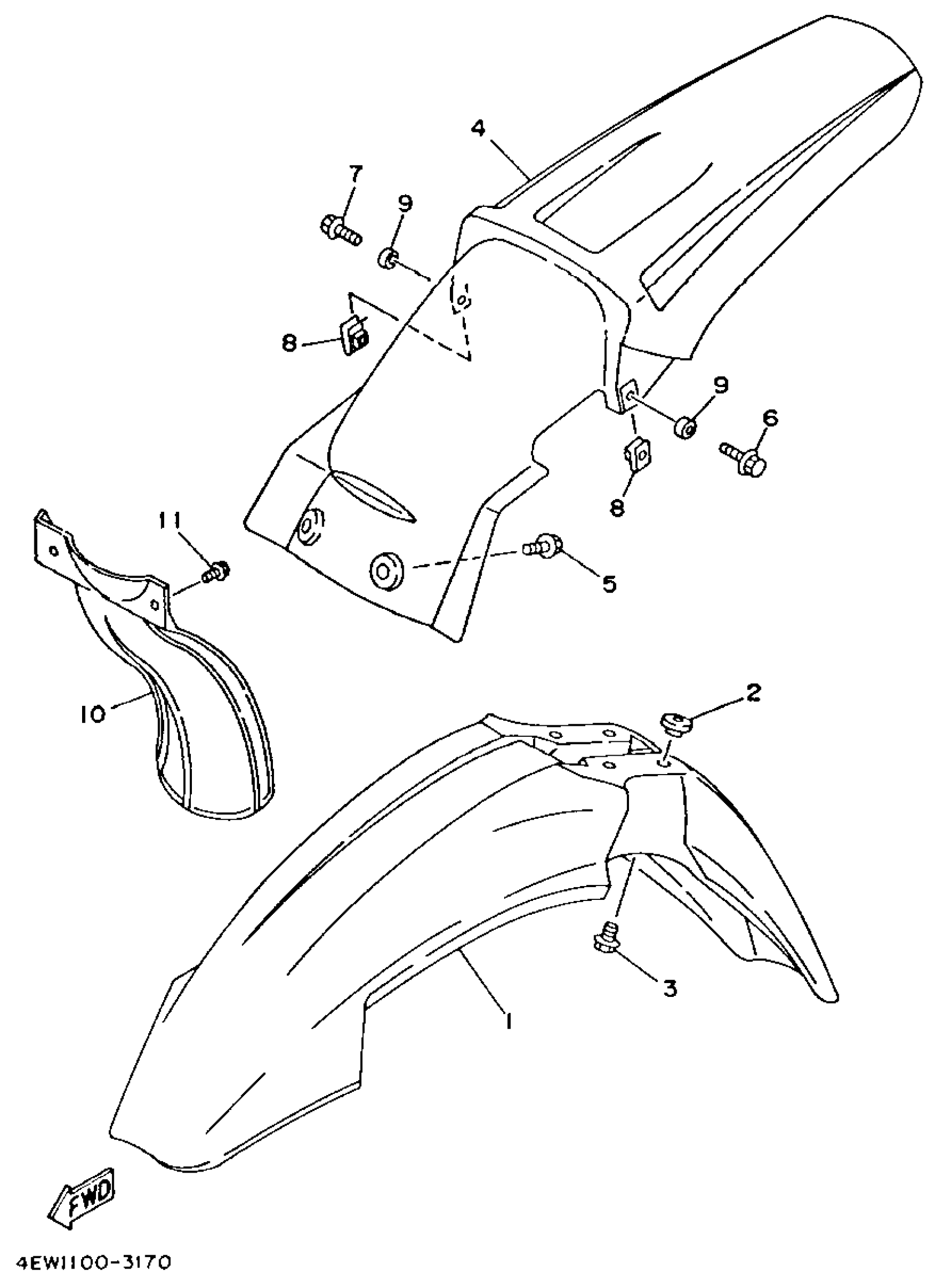 Yamaha YZ250E1 (YZ250E1) 1993 FENDER Diagram
