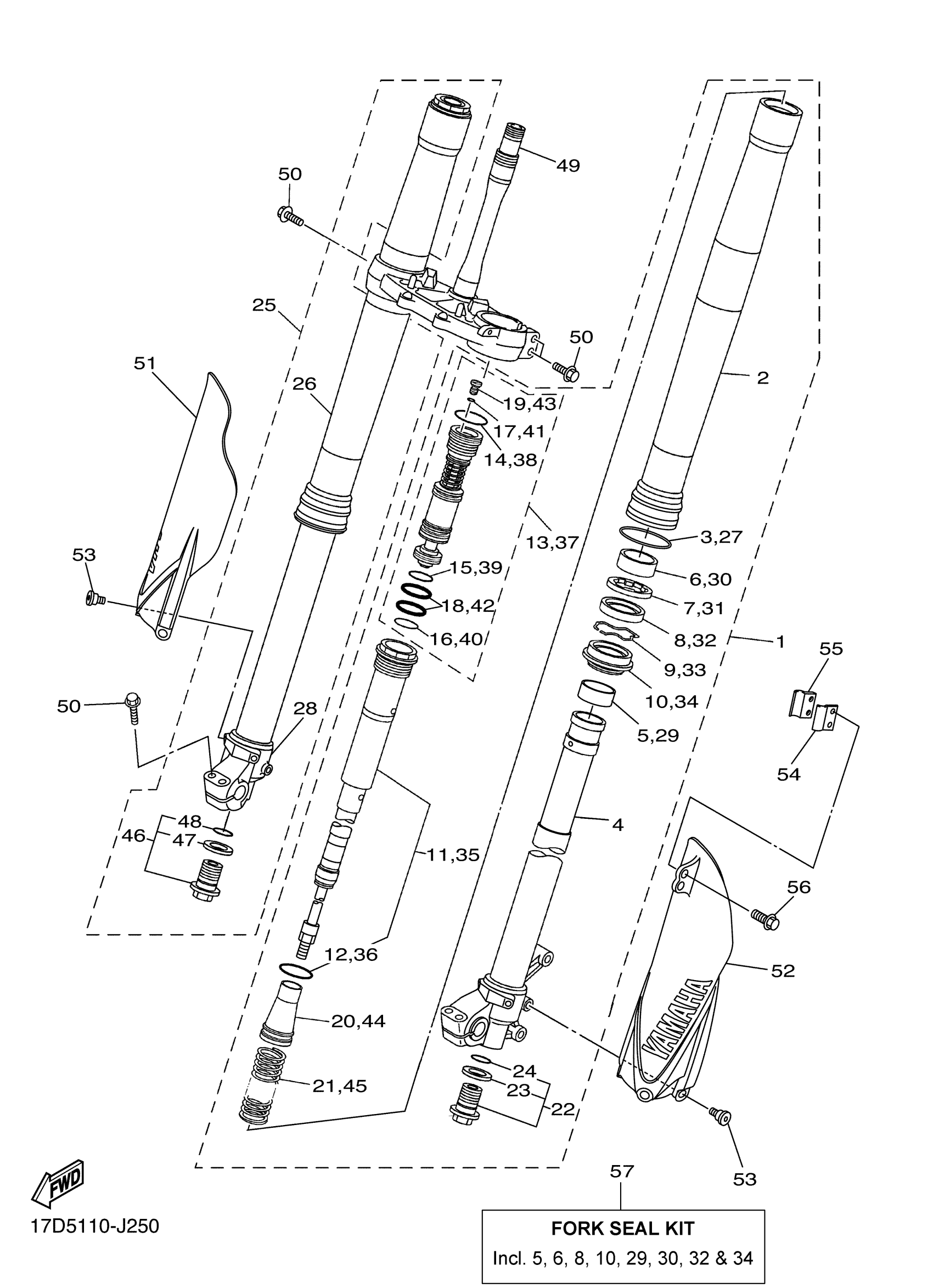 Yamaha YZ250FAL (YZ250F) 17DD0 2011 FRONT FORK Diagram