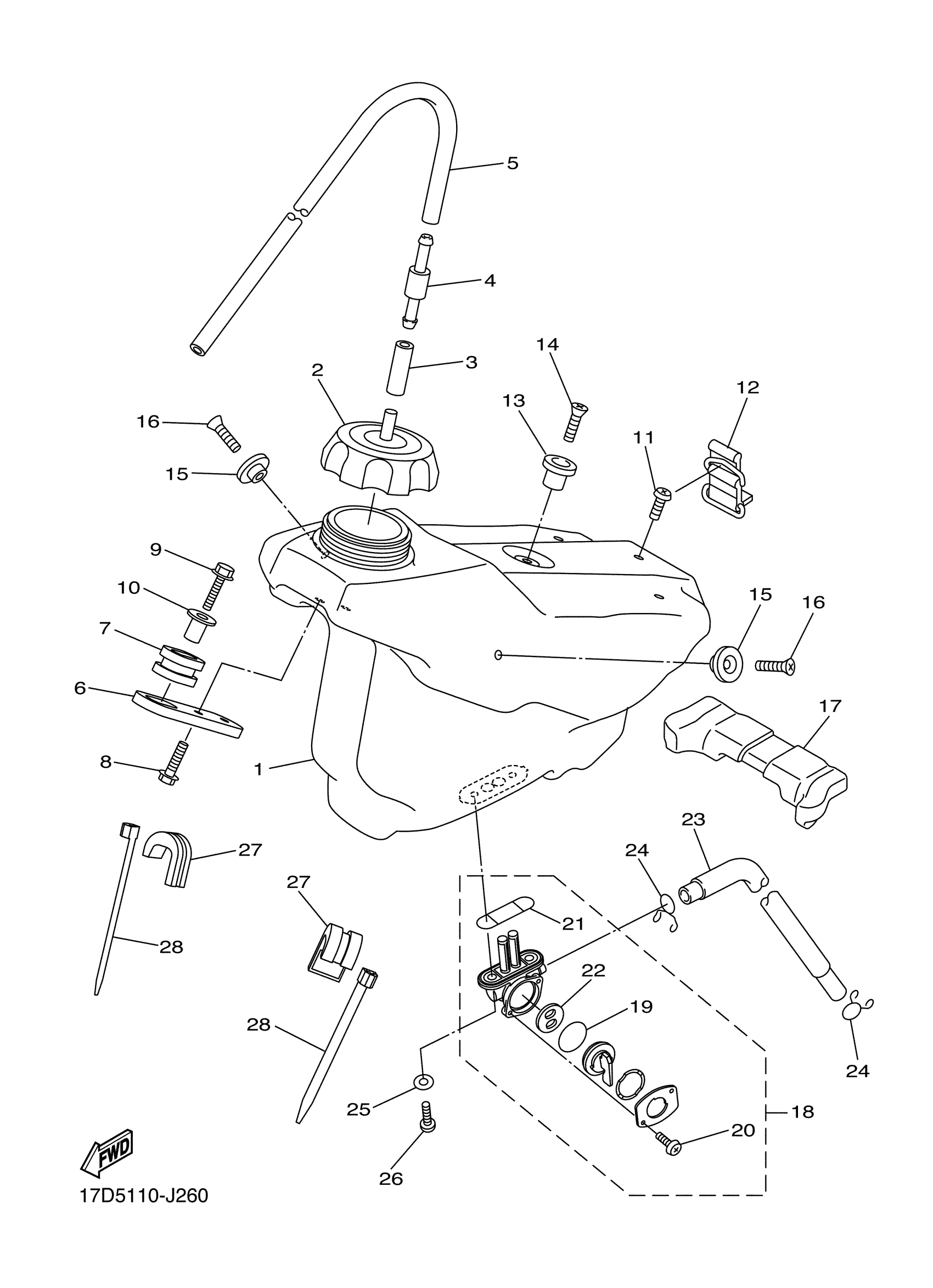 Yamaha YZ250FAL (YZ250F) 17DD0 2011 FUEL TANK Diagram