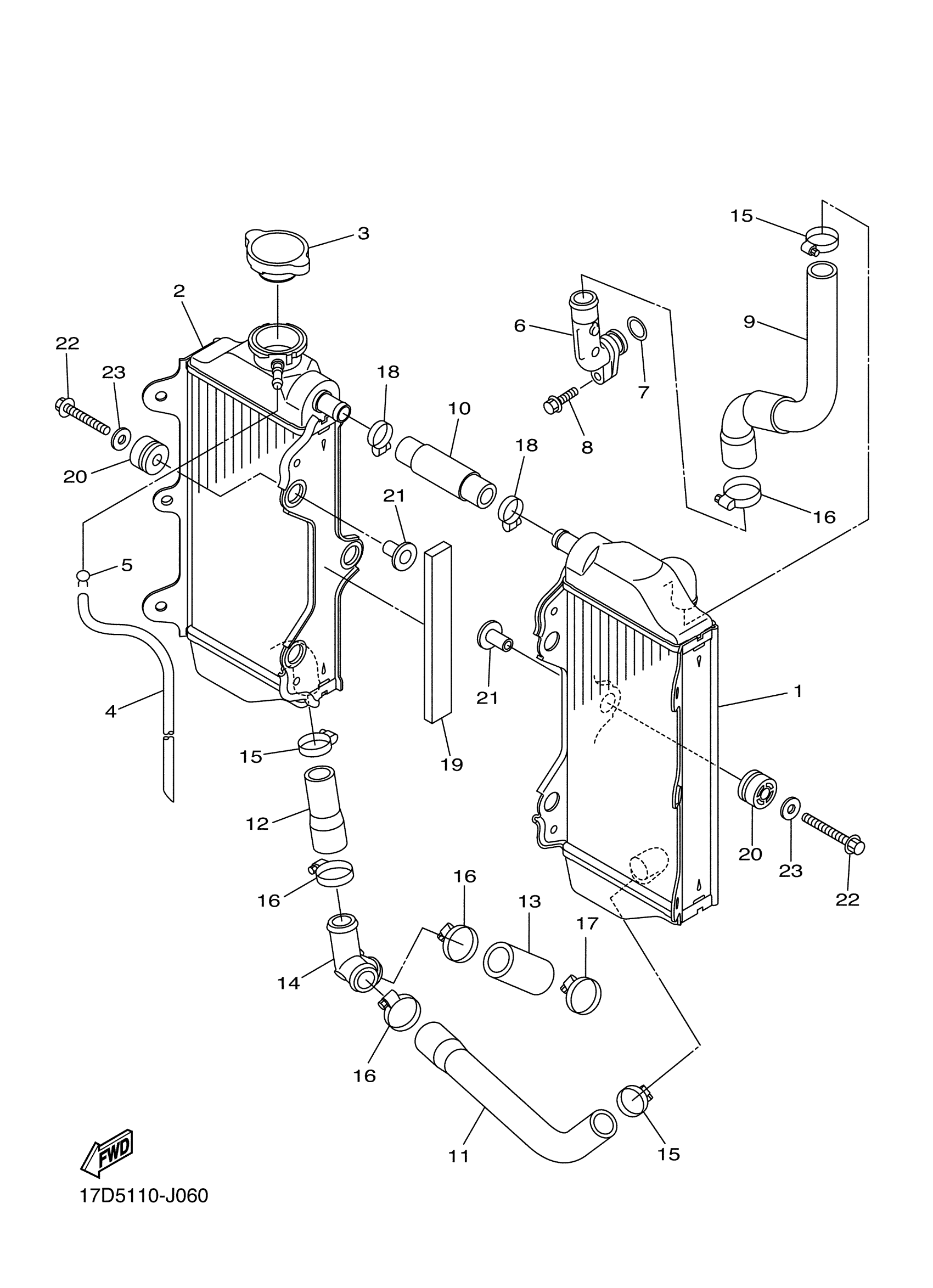 Yamaha YZ250FAL (YZ250F) 17DD0 2011 RADIATOR HOSE Diagram