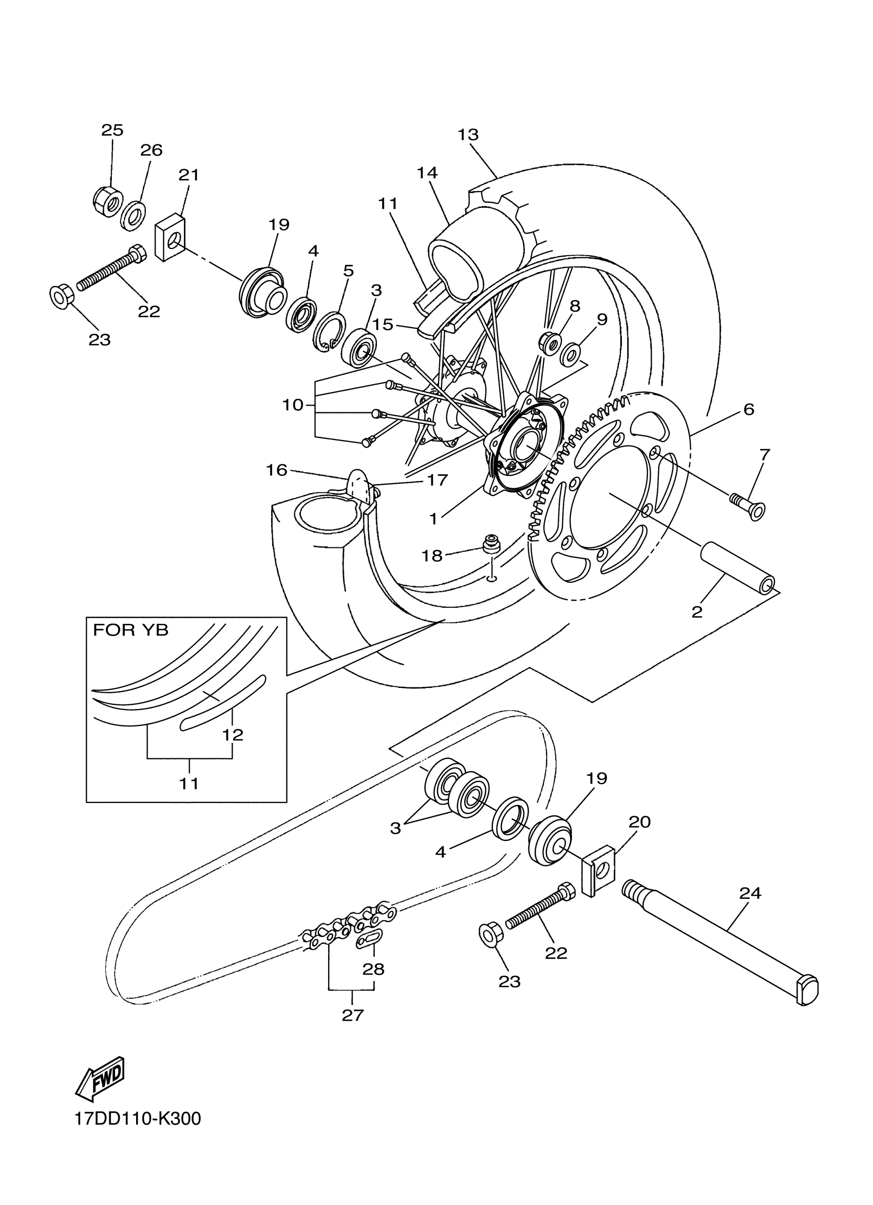Yamaha YZ250FAL (YZ250F) 17DD0 2011 REAR WHEEL Diagram