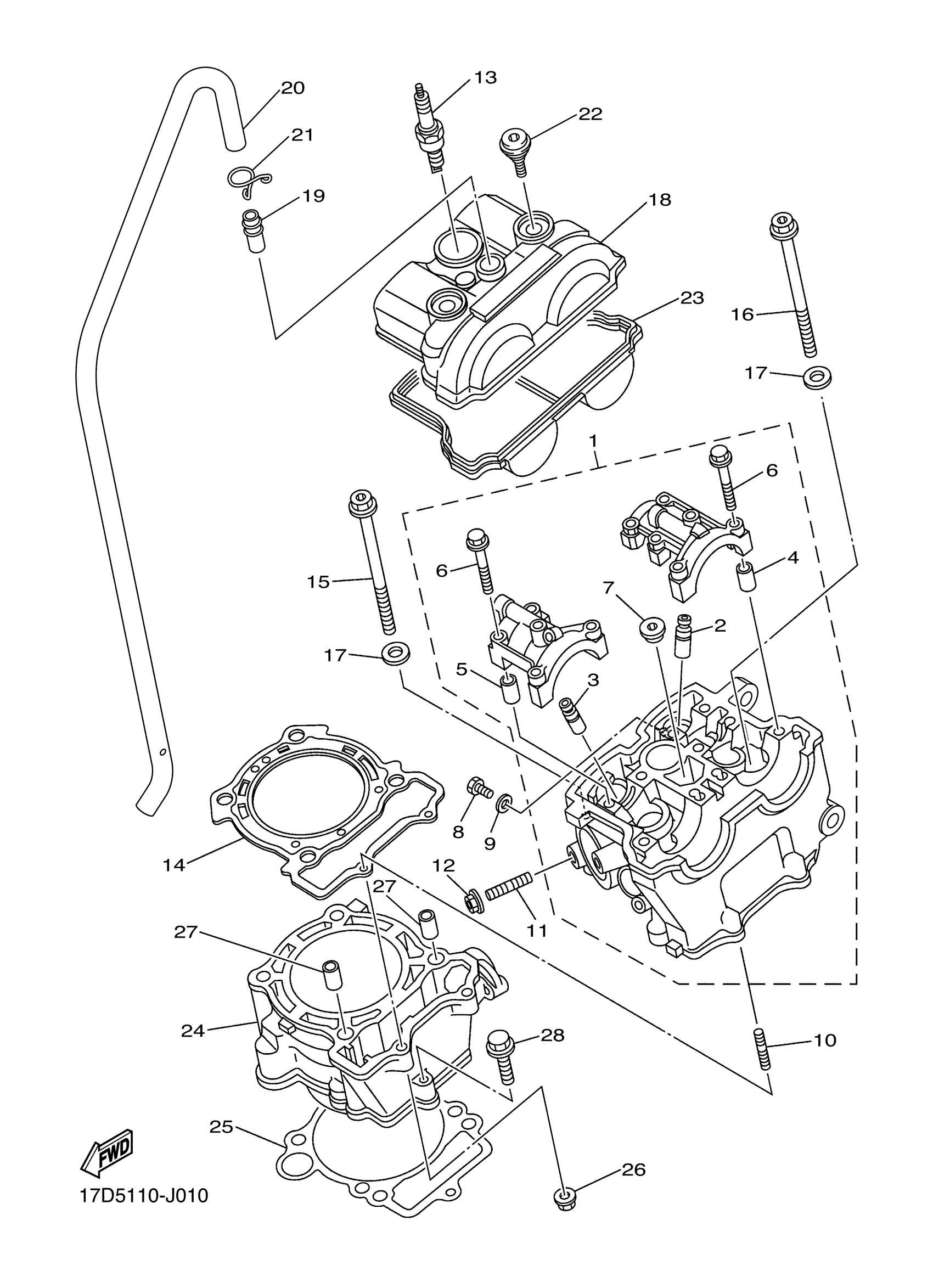 Yamaha YZ250FDW (YZ250F) 17DH0 2013 CYLINDER Diagram