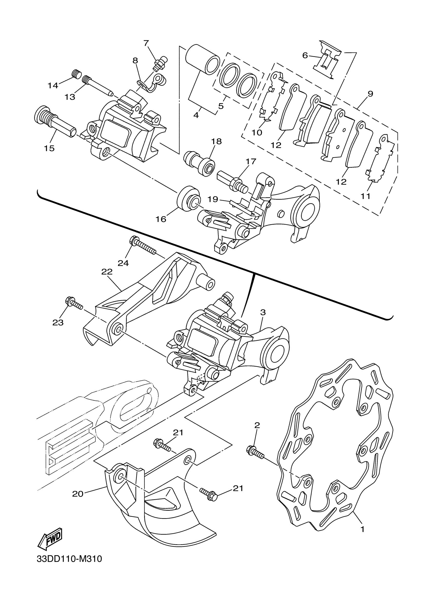 Yamaha YZ250FDW (YZ250F) 17DH0 2013 REAR BRAKE CALIPER Diagram