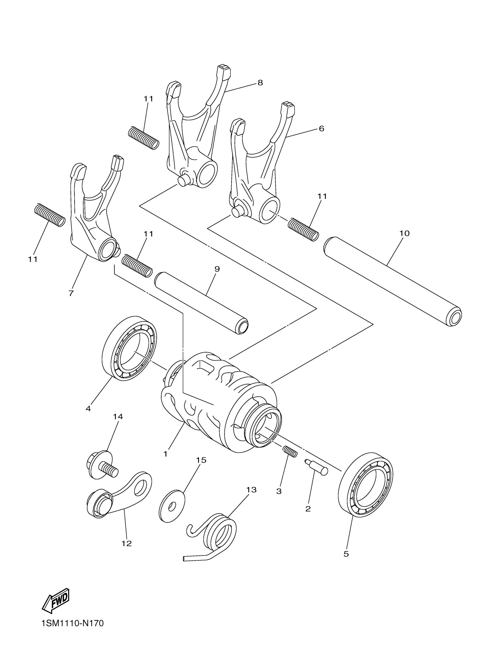 Yamaha YZ250FEW (YZ250FE) 1SM10 2014 SHIFT CAM FORK Diagram