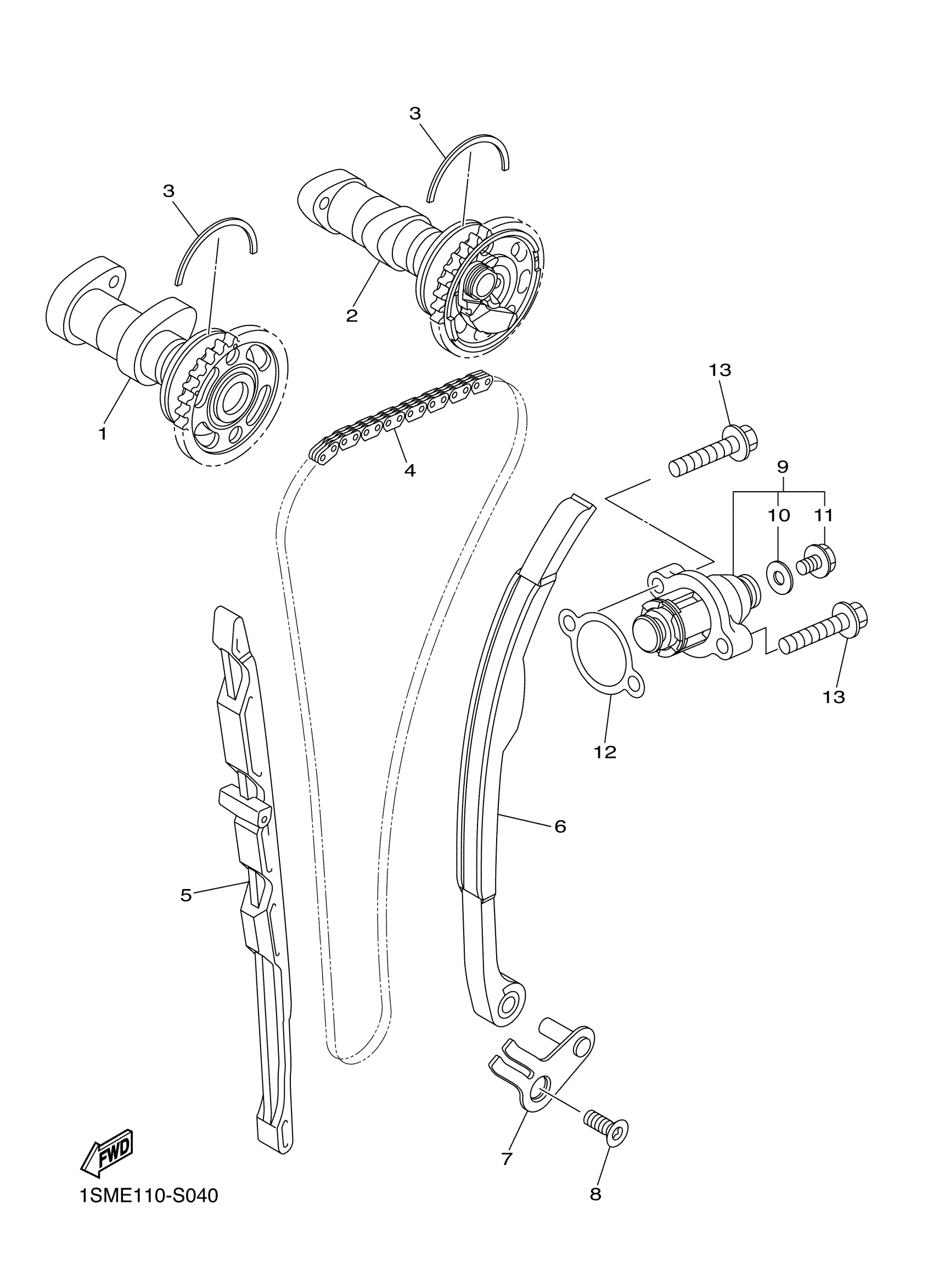 Yamaha YZ250FHW (YZ250F) 1SME0 2017 CAMSHAFT CHAIN Diagram