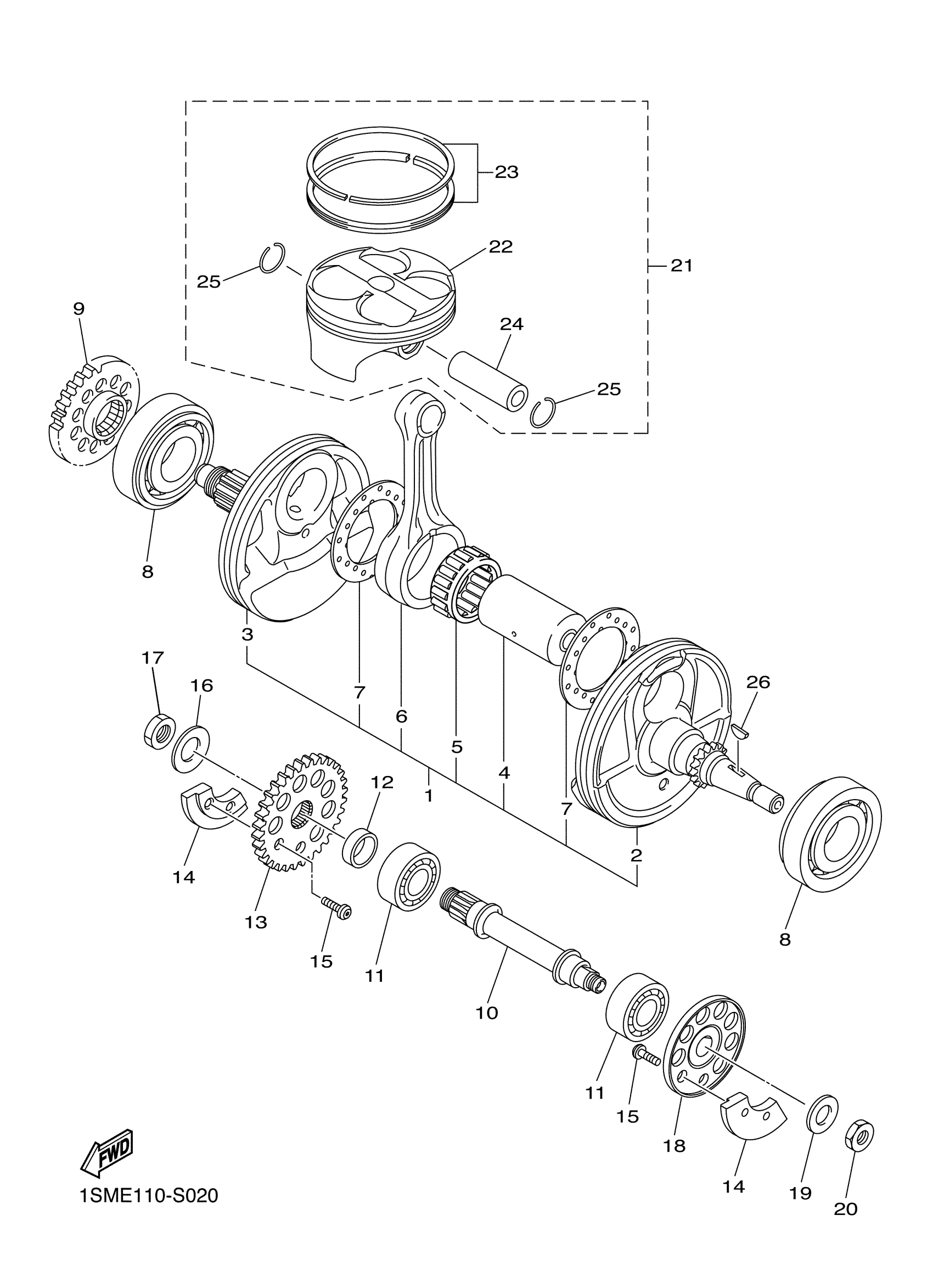 Yamaha YZ250FHW (YZ250F) 1SME0 2017 CRANKSHAFT PISTON Diagram