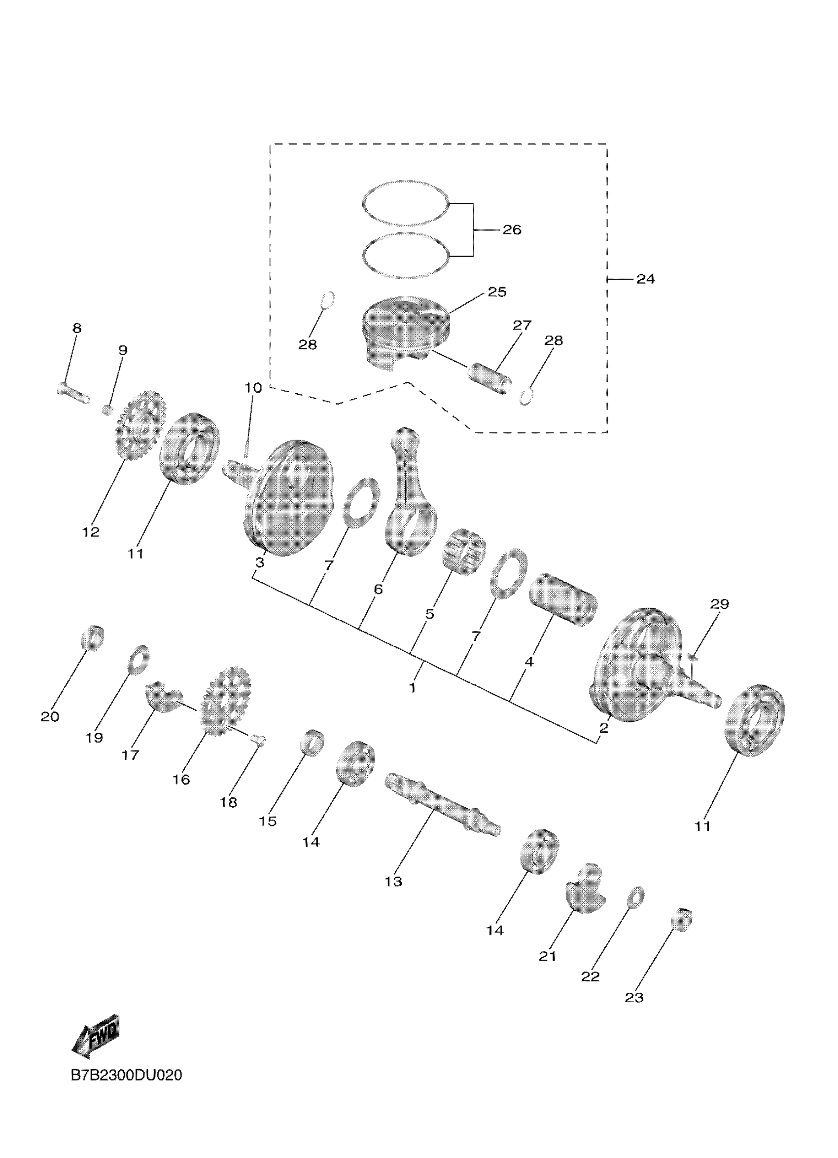 Yamaha YZ250FLL (YZ250F) B7B5 2020 CRANKSHAFT PISTON Diagram