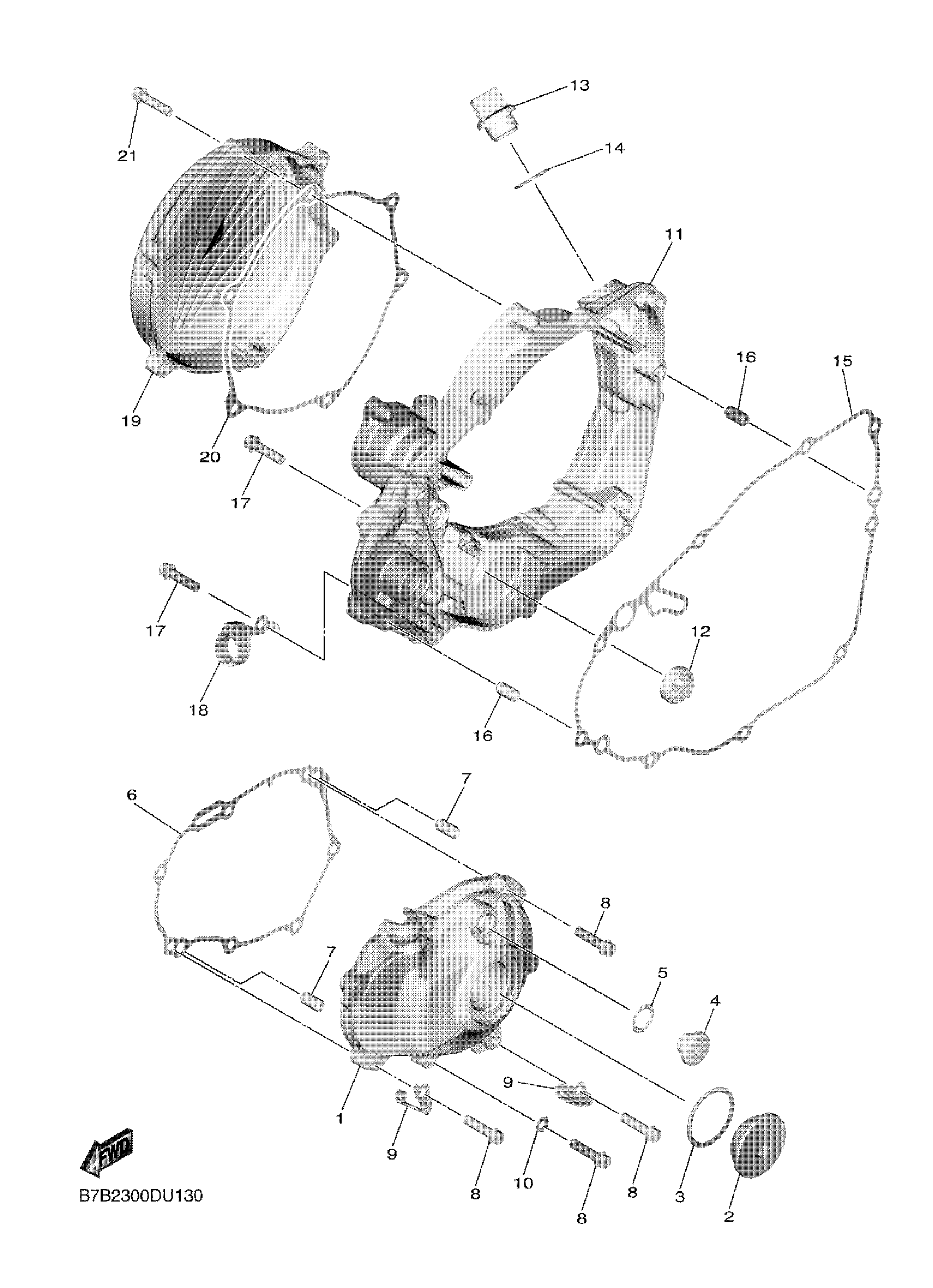 Yamaha YZ250FML (YZ250F) B7BA 2021 CRANKCASE COVER 1 Diagram
