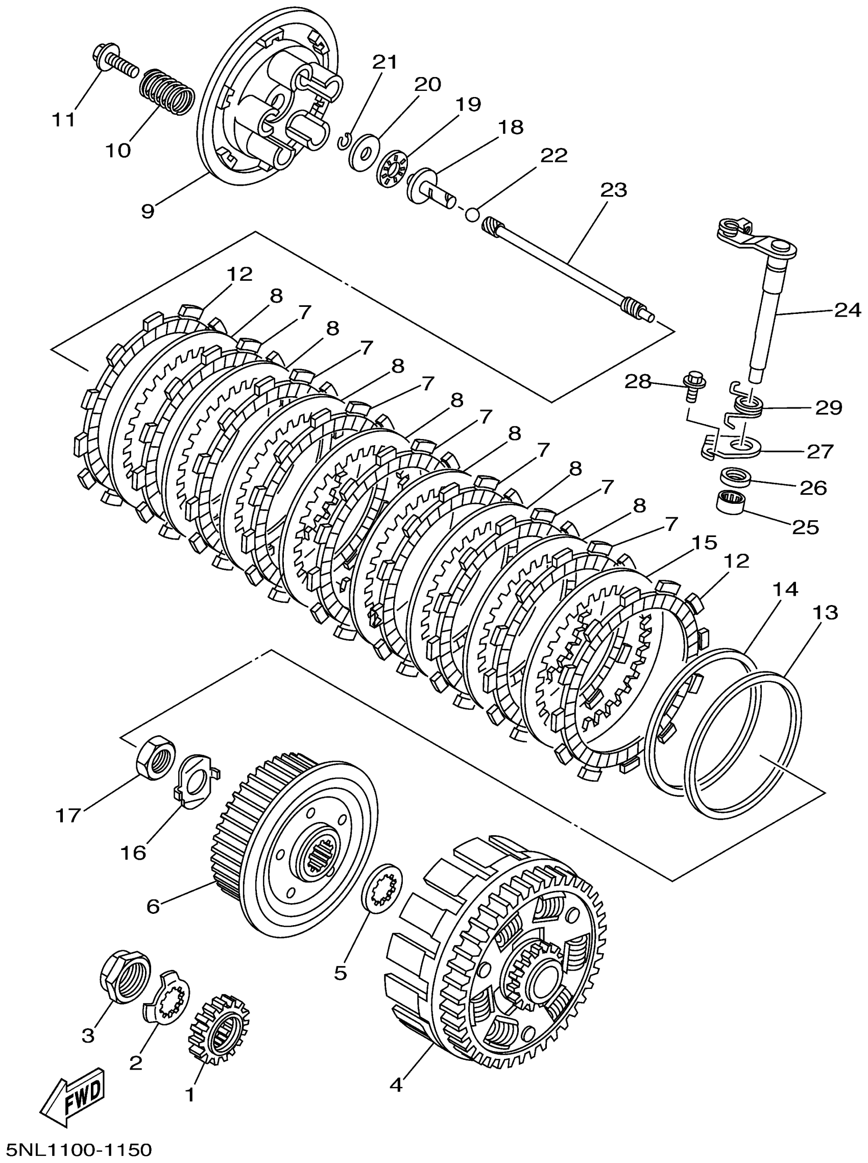 Yamaha YZ250FN (YZ250F) 5NL1 2001 CLUTCH Diagram