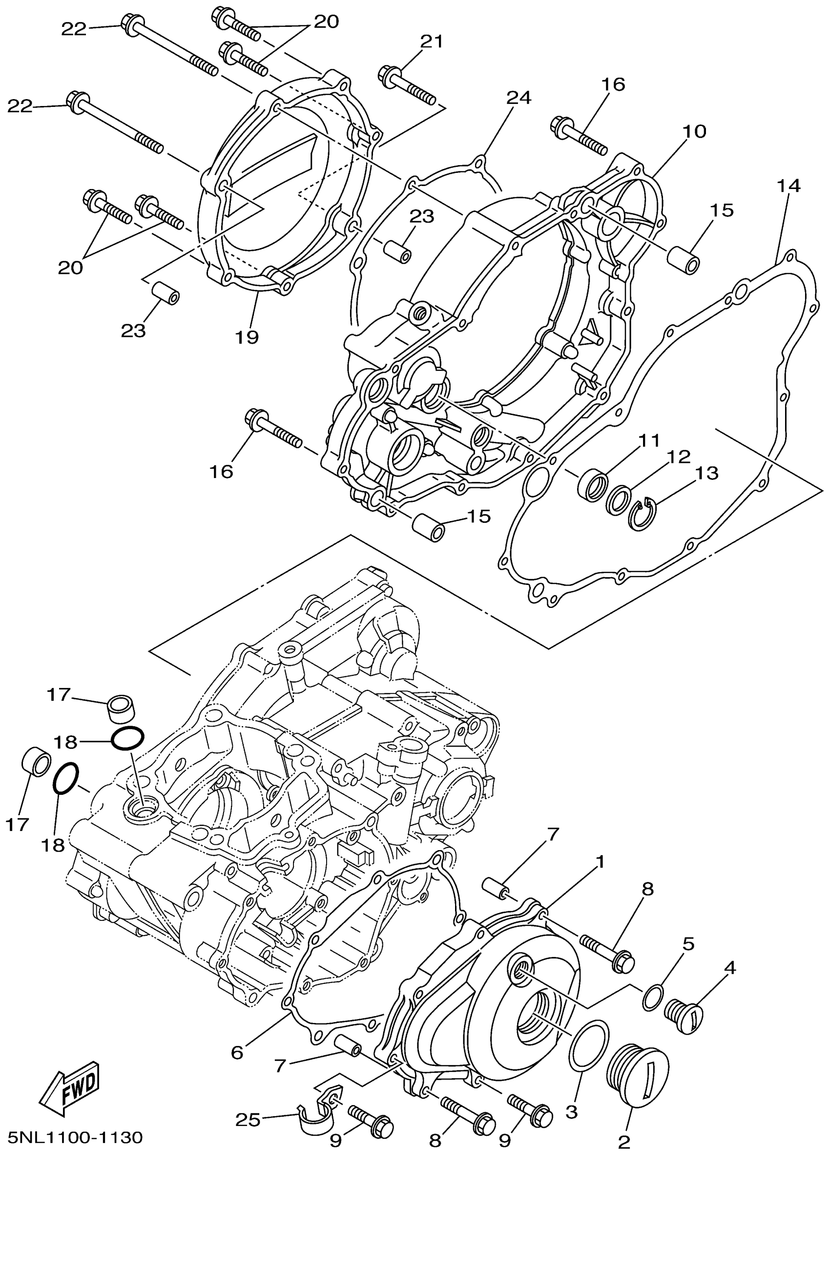 Yamaha YZ250FN (YZ250F) 5NL1 2001 CRANKCASE COVER 1 Diagram