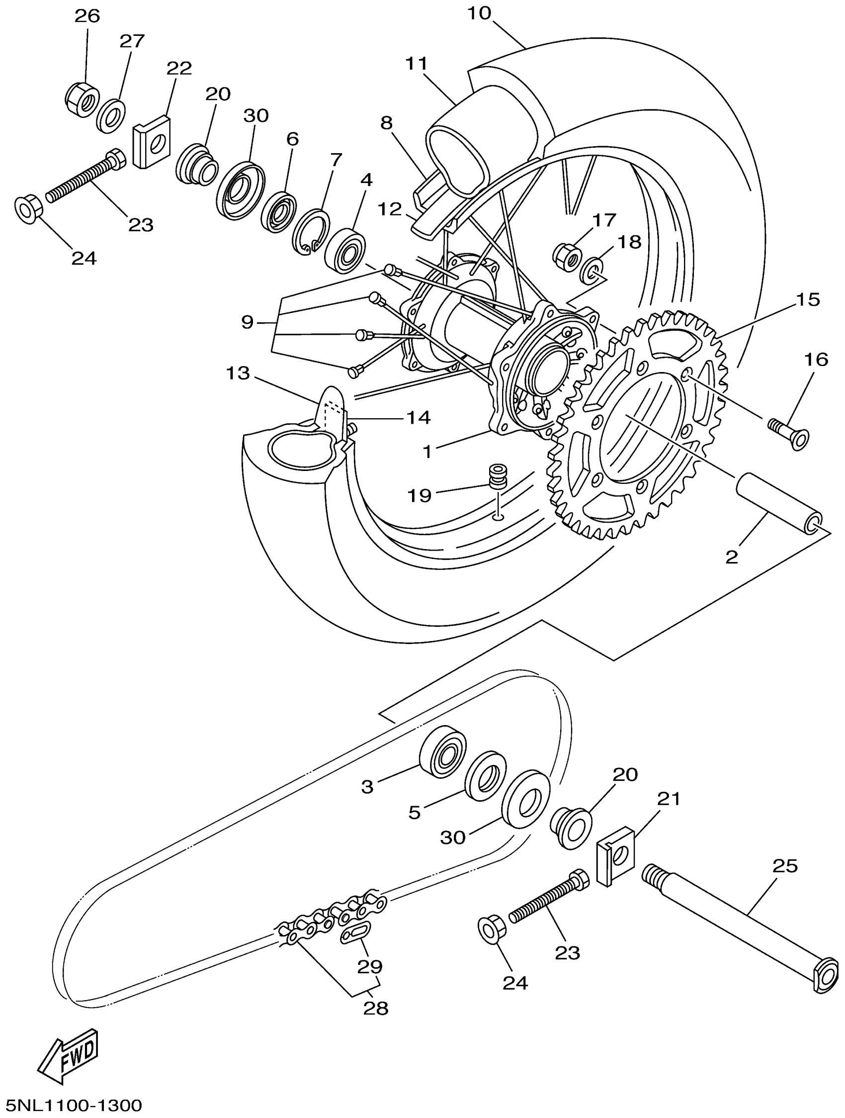 Yamaha YZ250FN (YZ250F) 5NL1 2001 REAR WHEEL Diagram