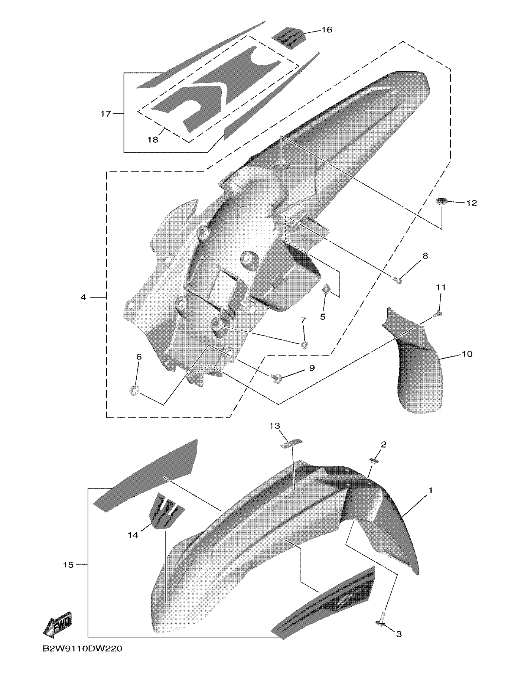 Yamaha YZ250FNME (YZ250F MONSTER) B7BR 2022 FENDER Diagram