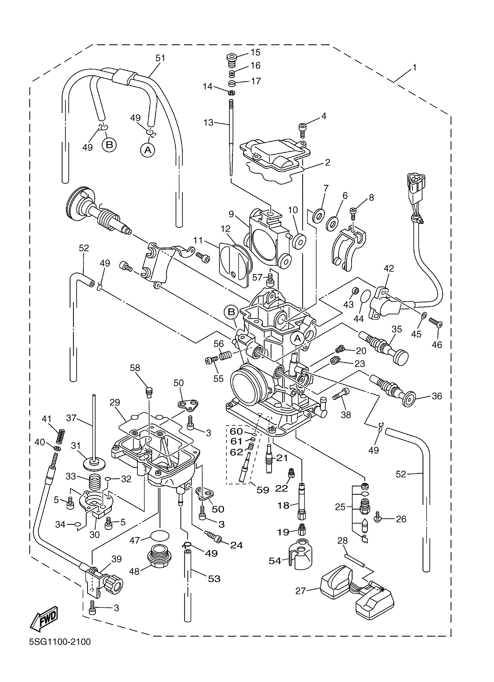 Yamaha YZ250FP (YZ250F) 5SG1 2002 CARBURETOR Diagram
