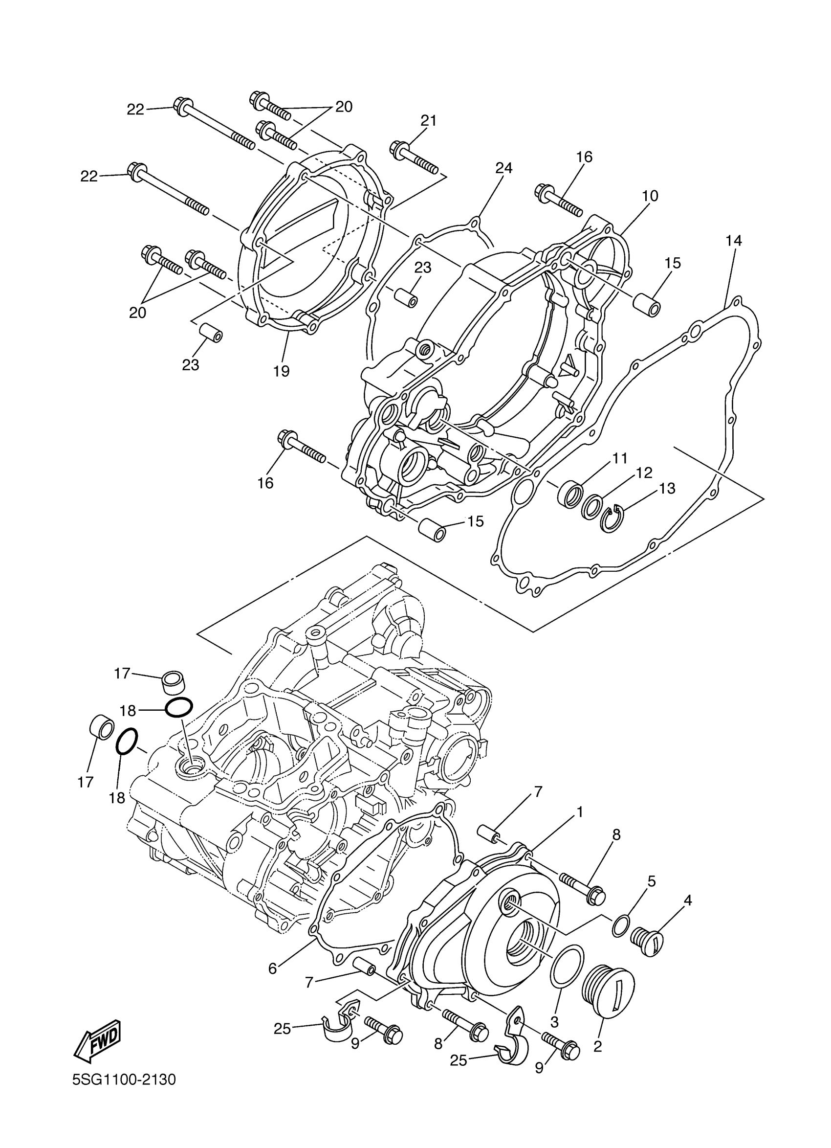 Yamaha YZ250FP (YZ250F) 5SG1 2002 CRANKCASE COVER 1 Diagram