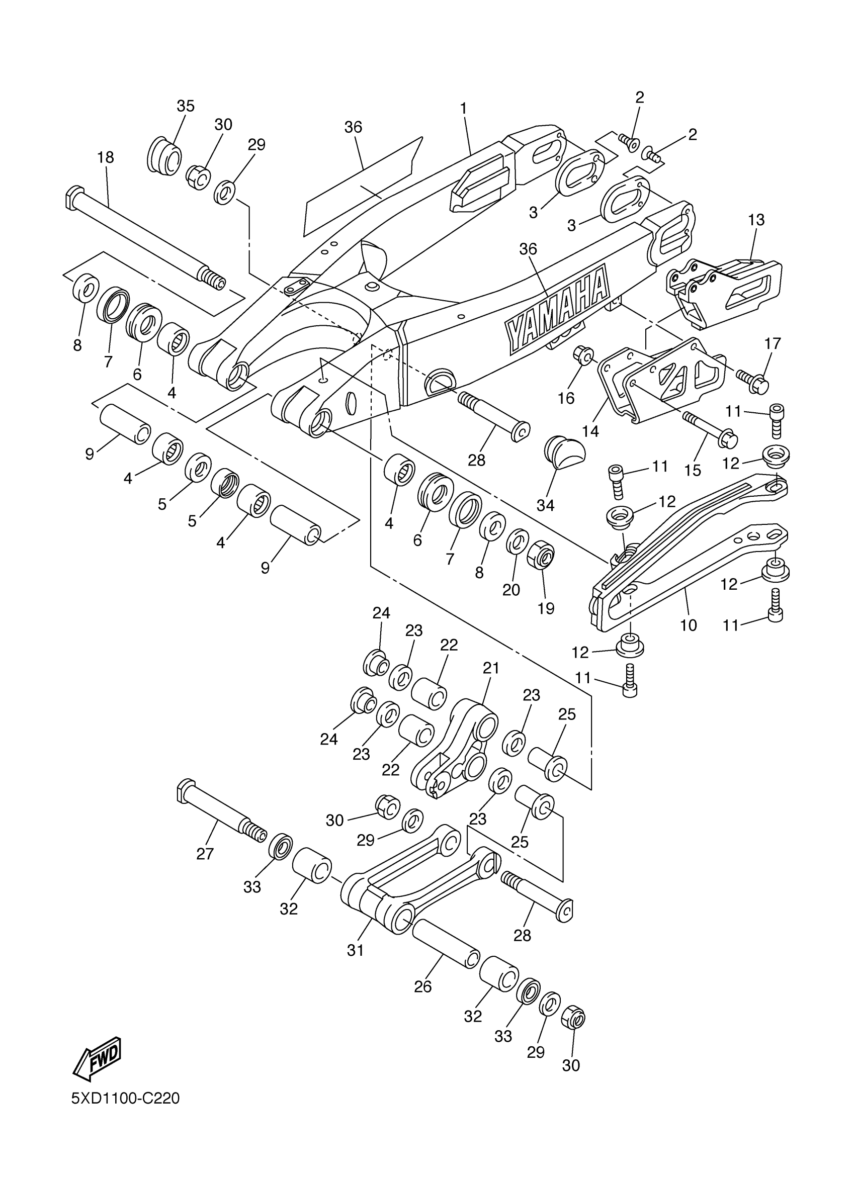 Yamaha YZ250FS (YZ250F) 5XC1 2004 REAR ARM Diagram