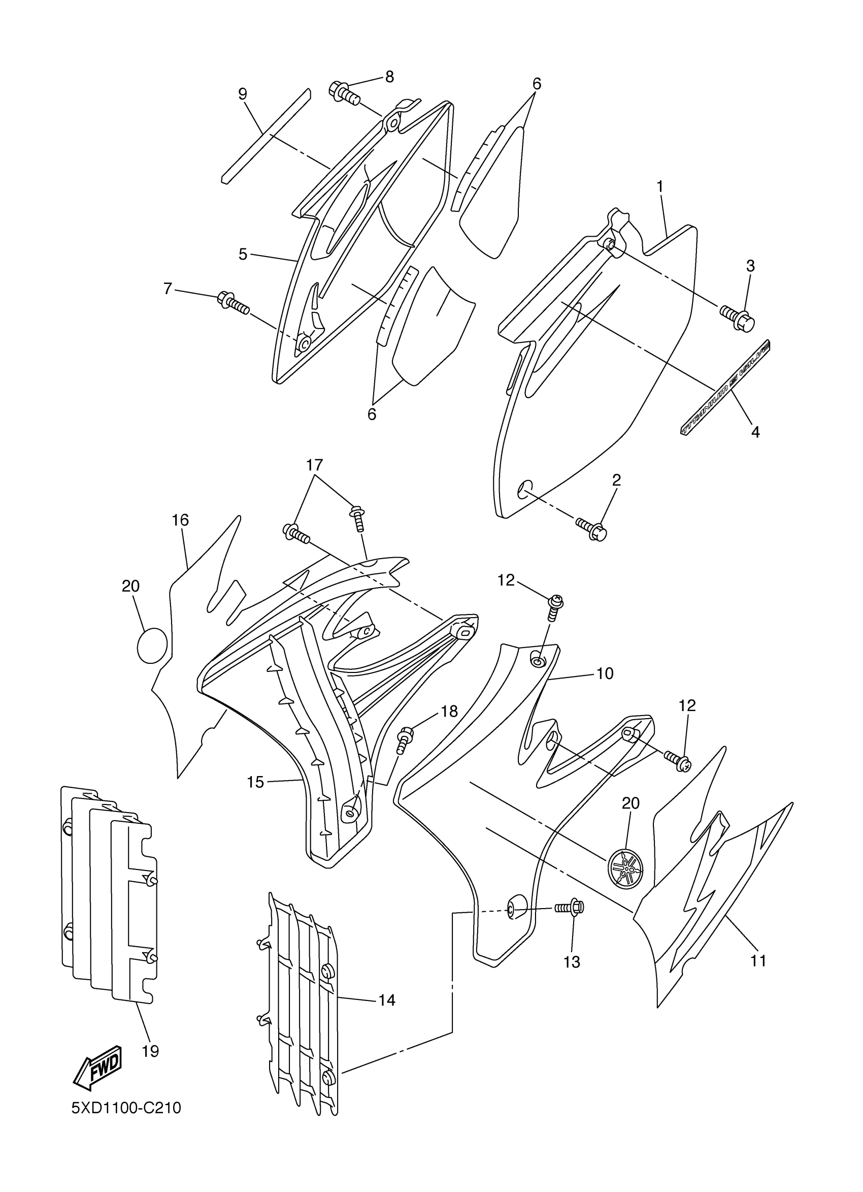 Yamaha YZ250FS (YZ250F) 5XC1 2004 SIDE COVER Diagram