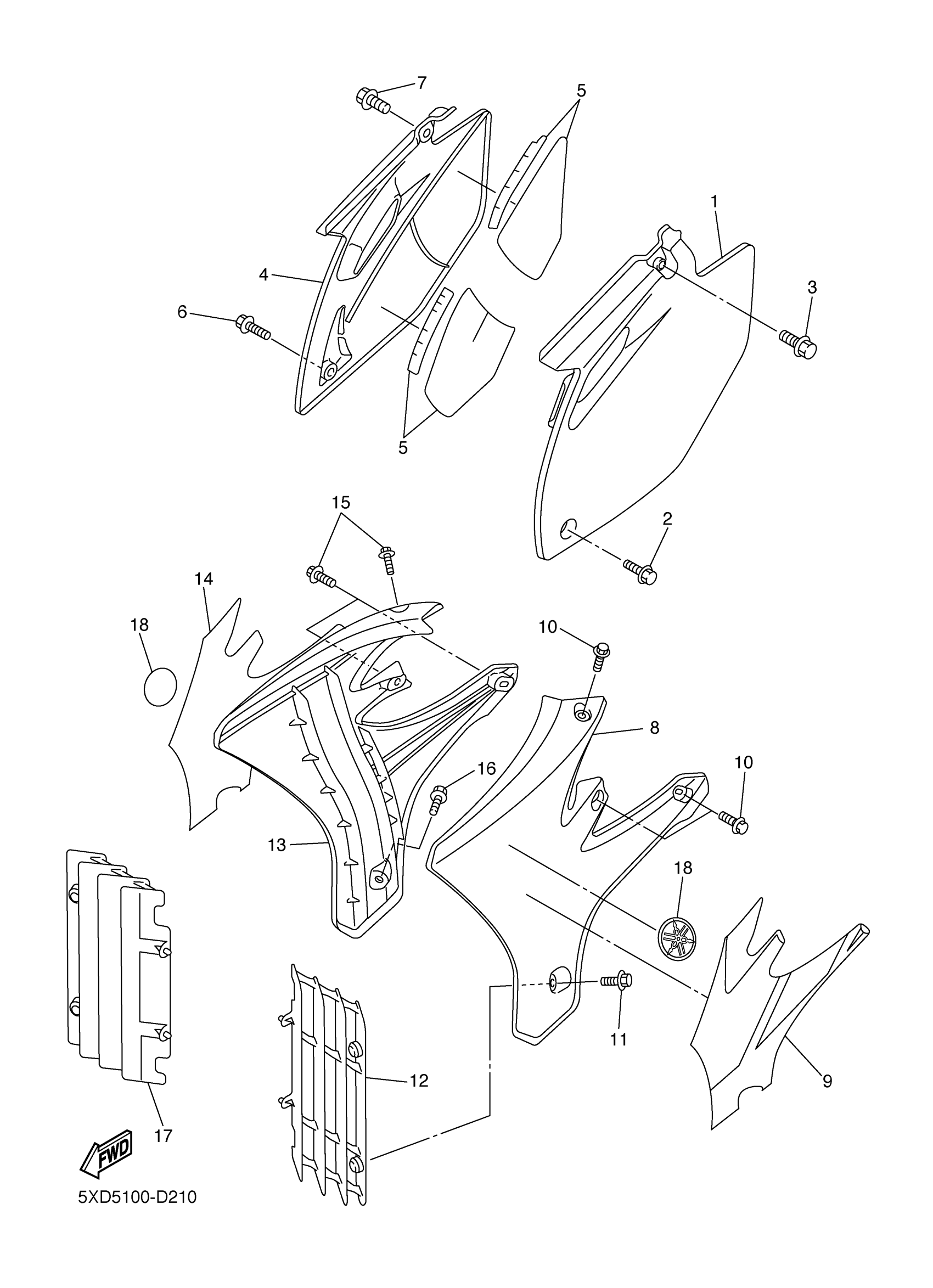Yamaha YZ250FT (YZ250F) 5XC5 2005 SIDE COVER Diagram