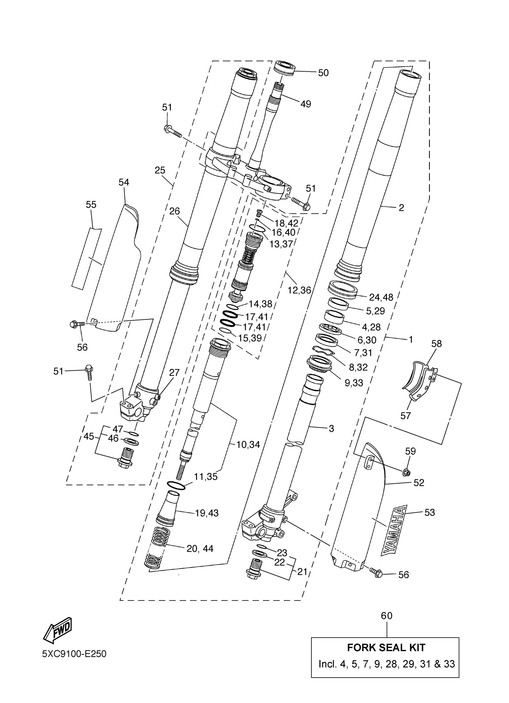 Yamaha YZ250FV (YZ250F) 5XC9 2006 FRONT FORK Diagram