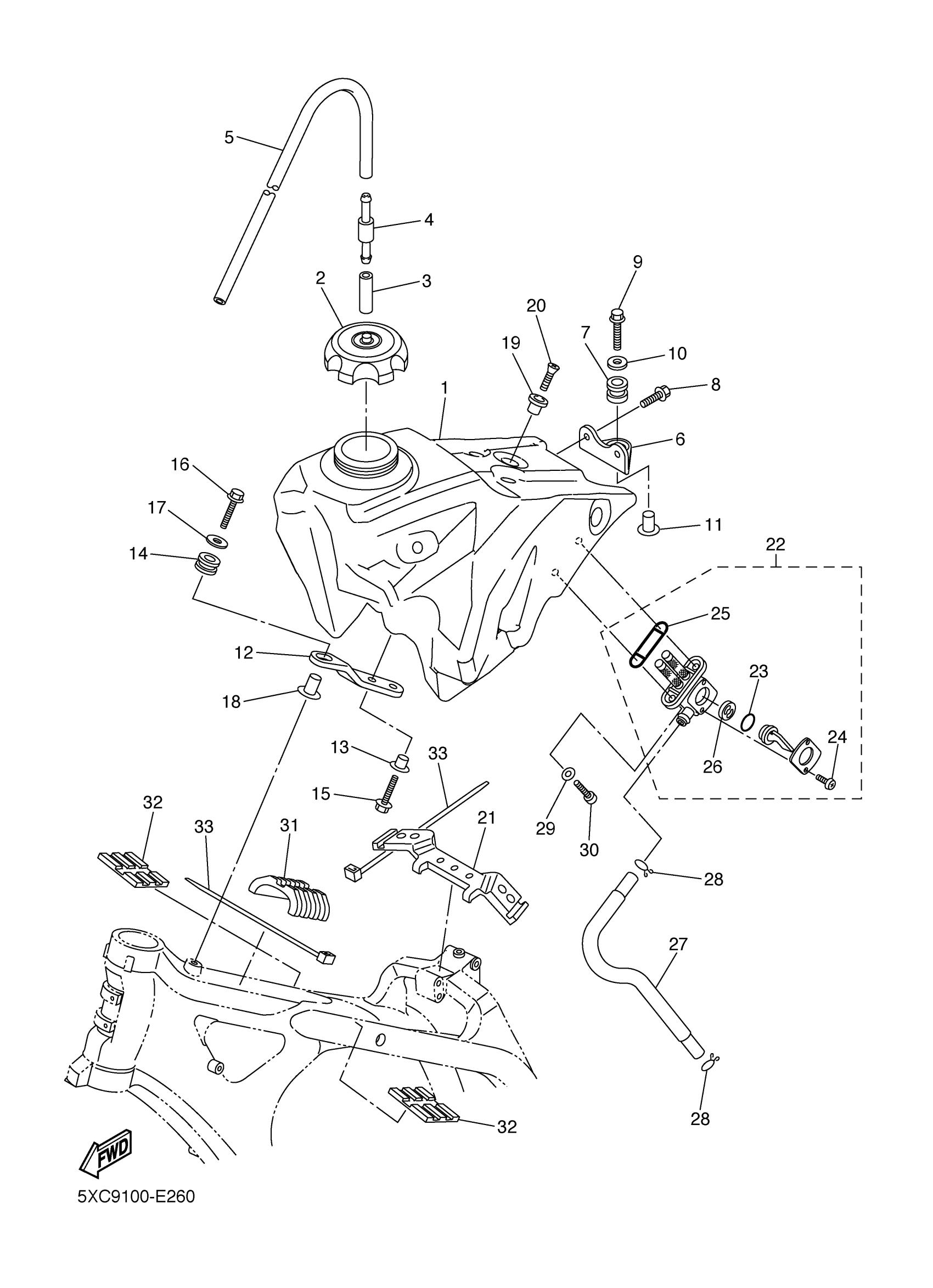 Yamaha YZ250FV (YZ250F) 5XC9 2006 FUEL TANK Diagram