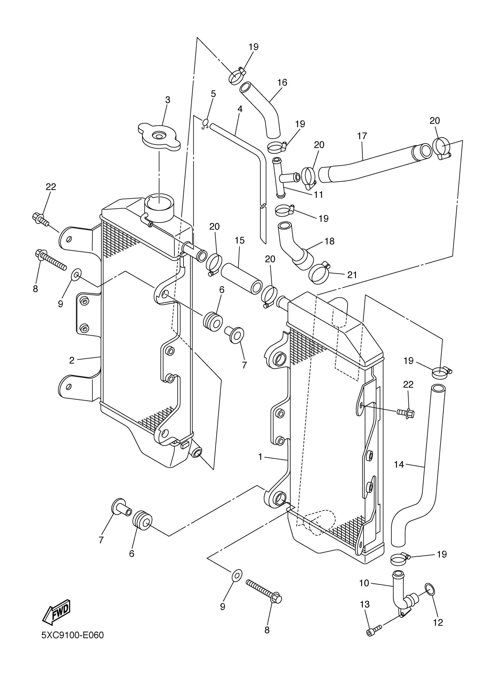 Yamaha YZ250FV (YZ250F) 5XC9 2006 RADIATOR HOSE Diagram