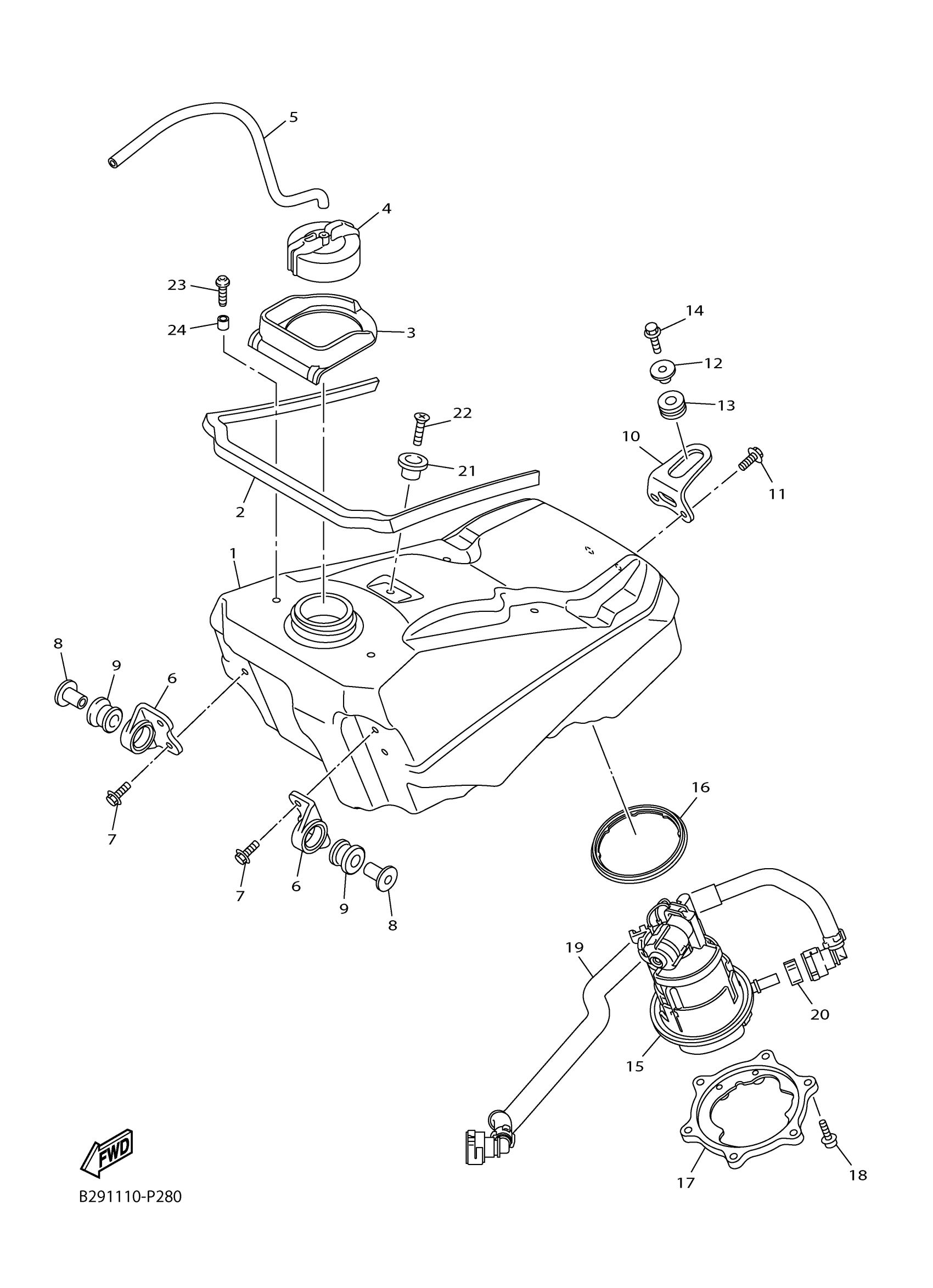 Yamaha YZ250FXF (YZ250FX) B291 2015 FUEL TANK Diagram