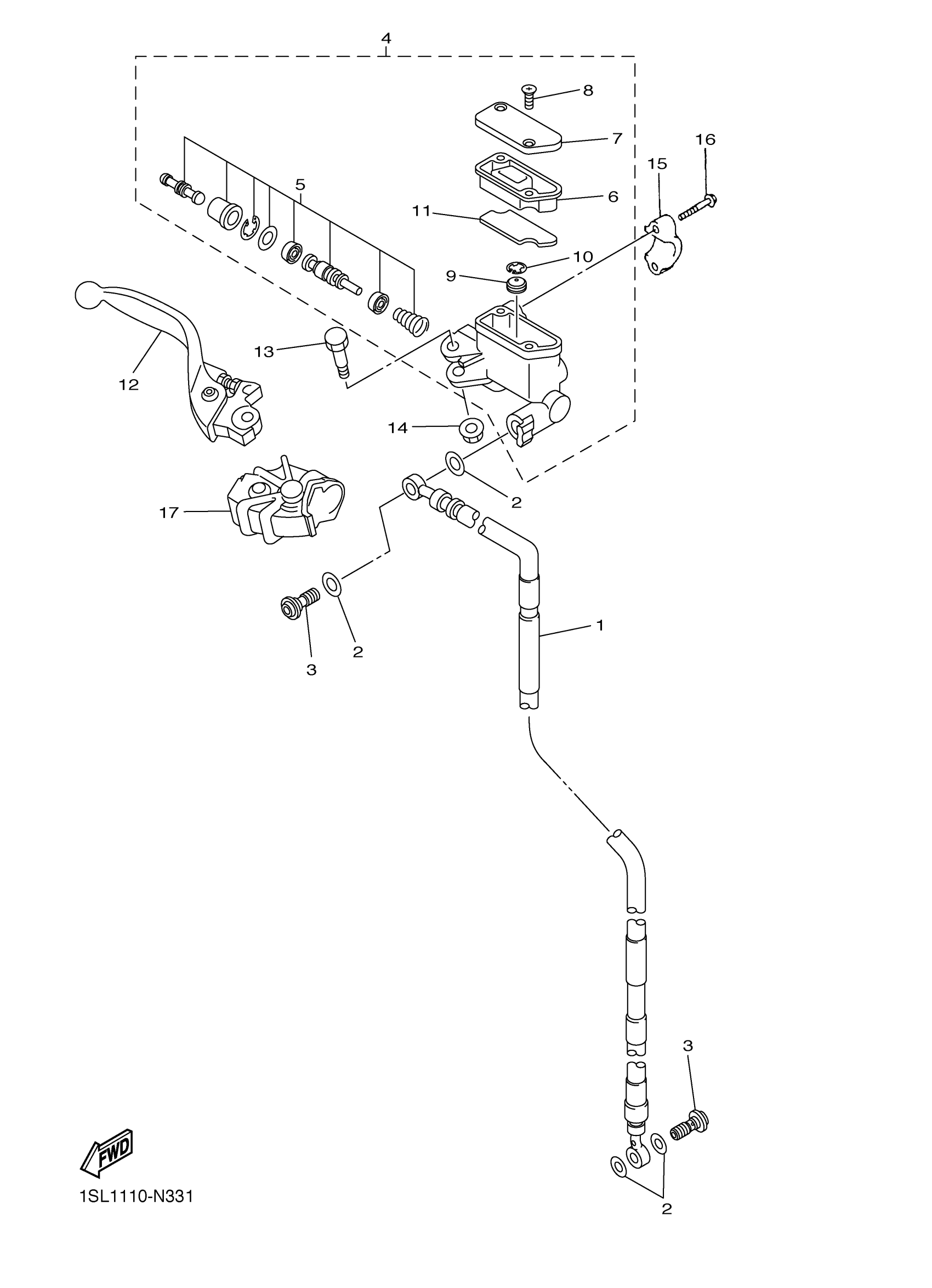 Yamaha YZ250FXH (YZ250FX) B29B 2017 FRONT MASTER CYLINDER Diagram